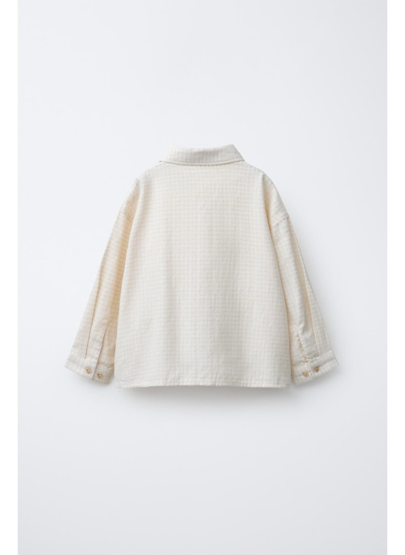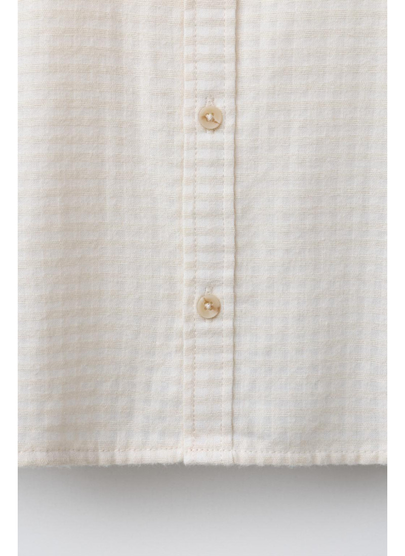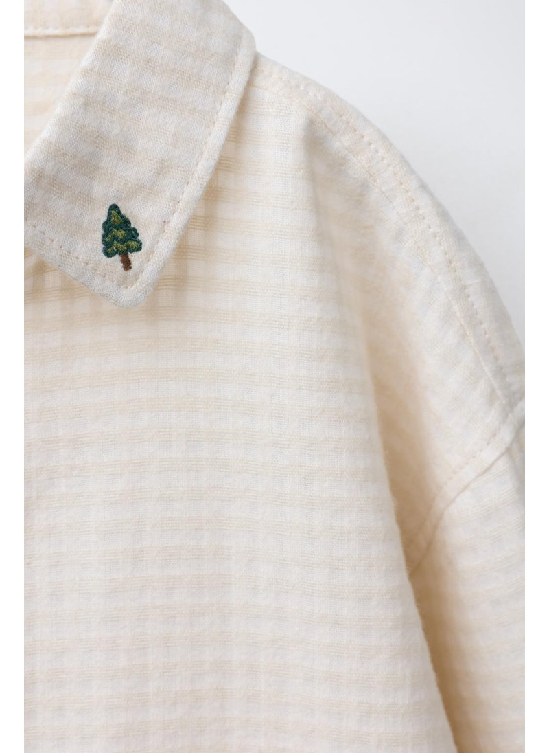 Рубашка с воротником-рубашкой и длинными рукавами с пуговицами для регулировки. Застегивается на пуговицы спереди. Детали вышитых деревьев на воротнике.