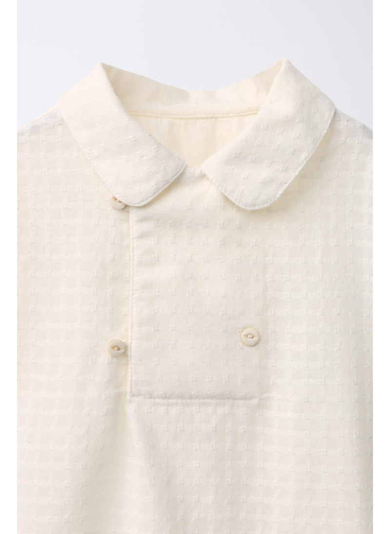 Рубашка с воротником «питер пэн» и длинными рукавами с застежками на пуговицы. Имеет завязки с двубортной линией на передней стороне...