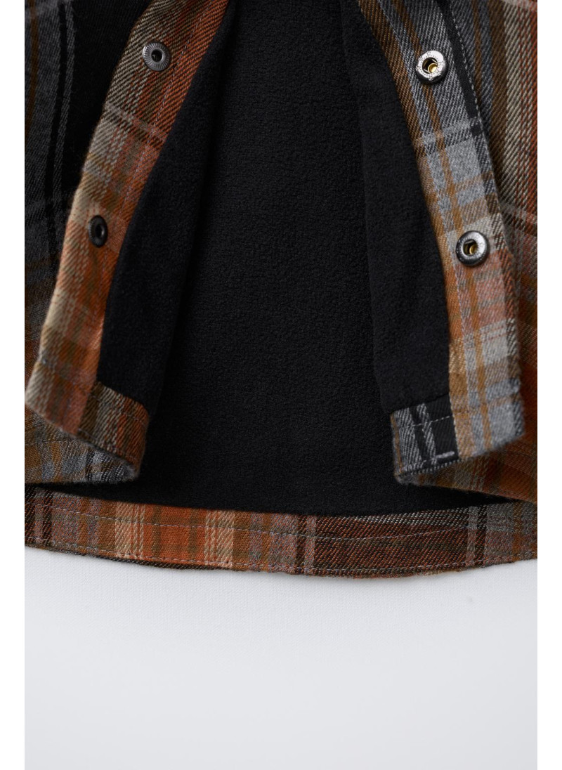 Овершерт с капюшоном и длинными рукавами. Застежка спереди на кнопки, нагрудный накладной карман и аппликация со штрих-кодом на подоле. Клетчатый принт...