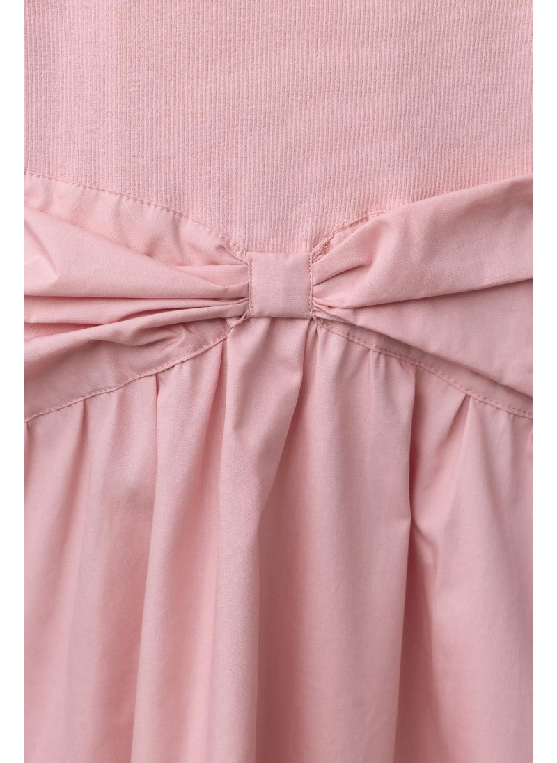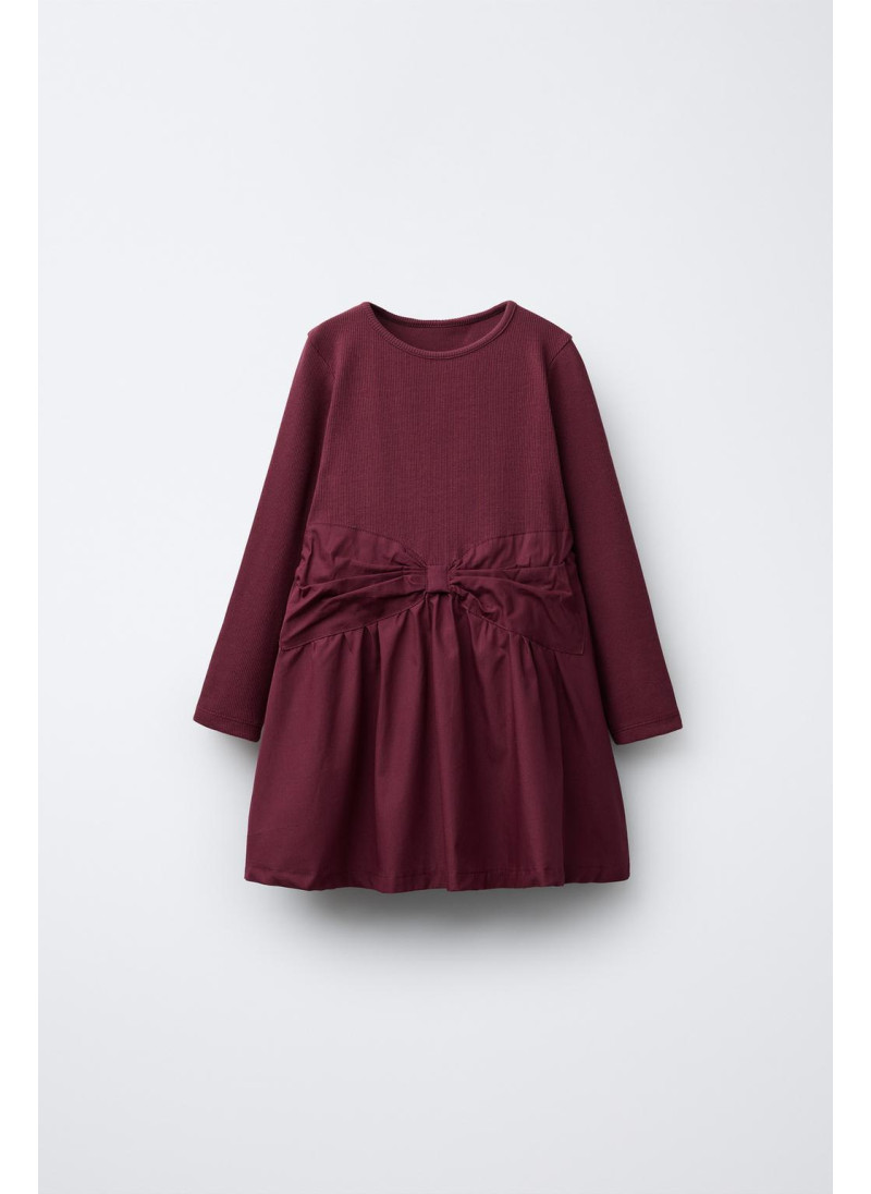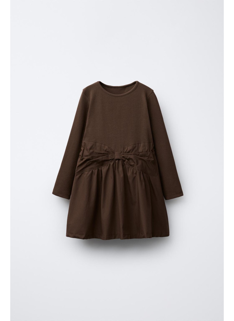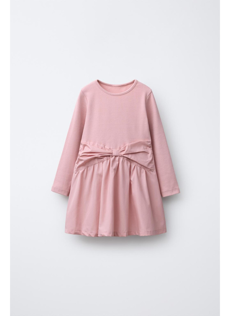 Платье с круглым вырезом и длинными рукавами. Комбинированный подол с бантом спереди. 100% хлопок.