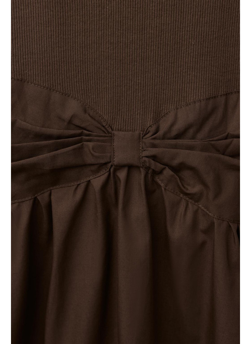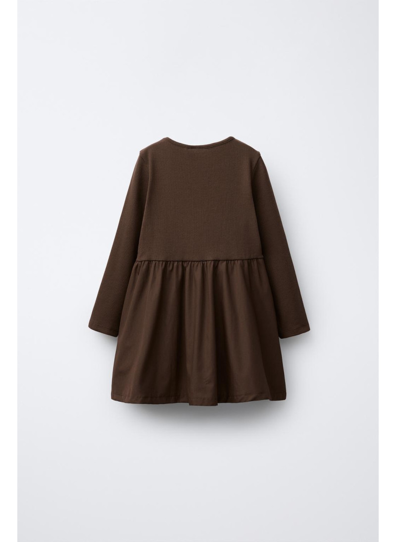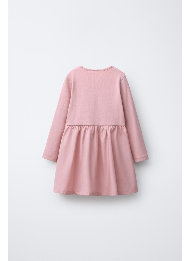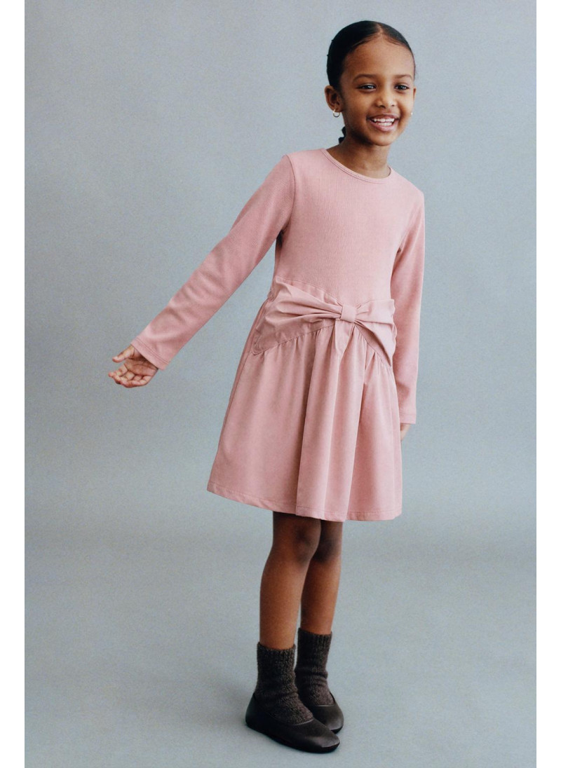 Платье с круглым вырезом и длинными рукавами. Комбинированный подол с бантом спереди. 100% хлопок.