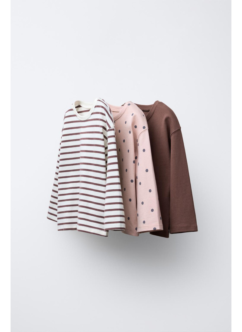 Набор из трех футболок с круглым вырезом и длинными рукавами. Различные принты. Ткань: 100% хлопок.
