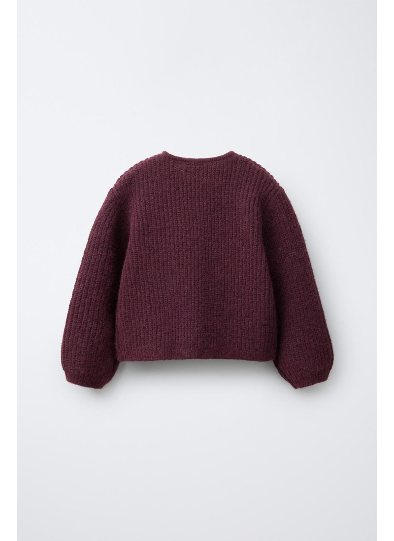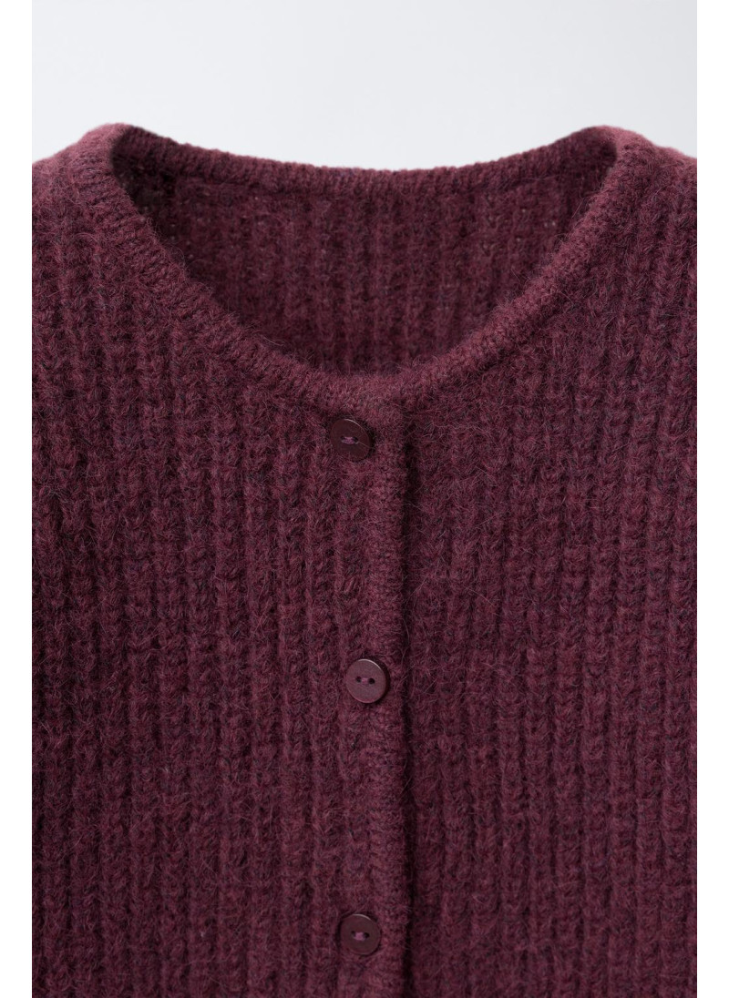 Кардиган с круглым вырезом и длинными рукавами. Застегивается на пуговицы.