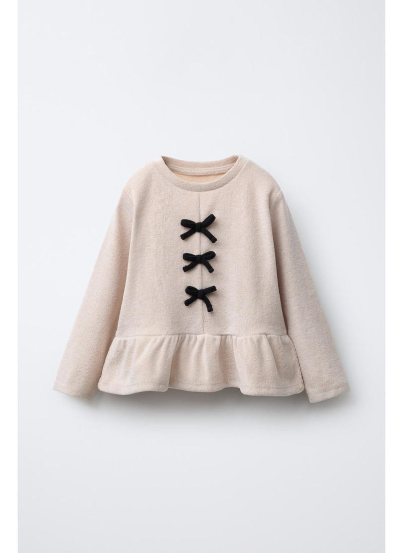 Футболка soft touch с круглым вырезом и длинными рукавами. Контрастные банты спереди. Волан по нижнему краю.