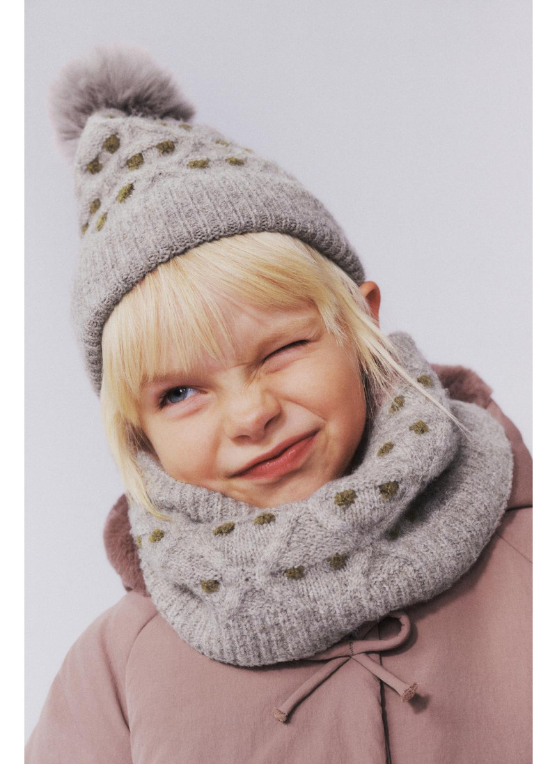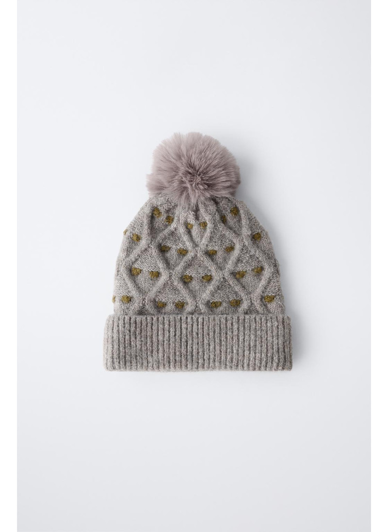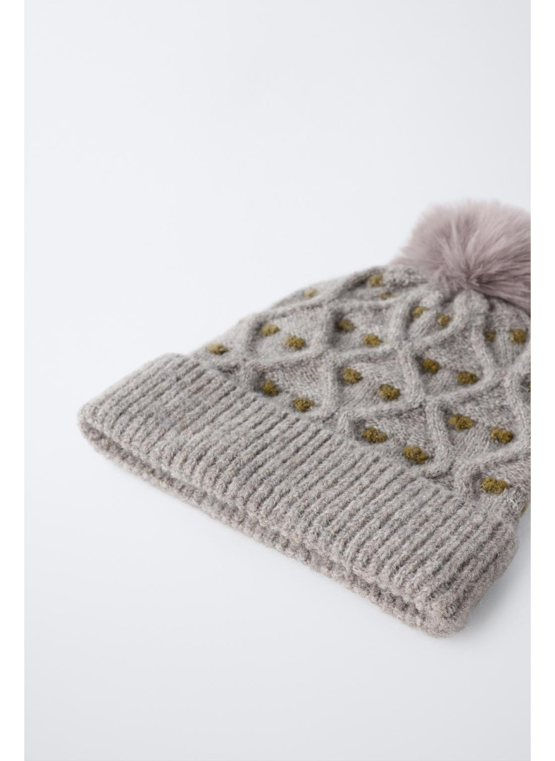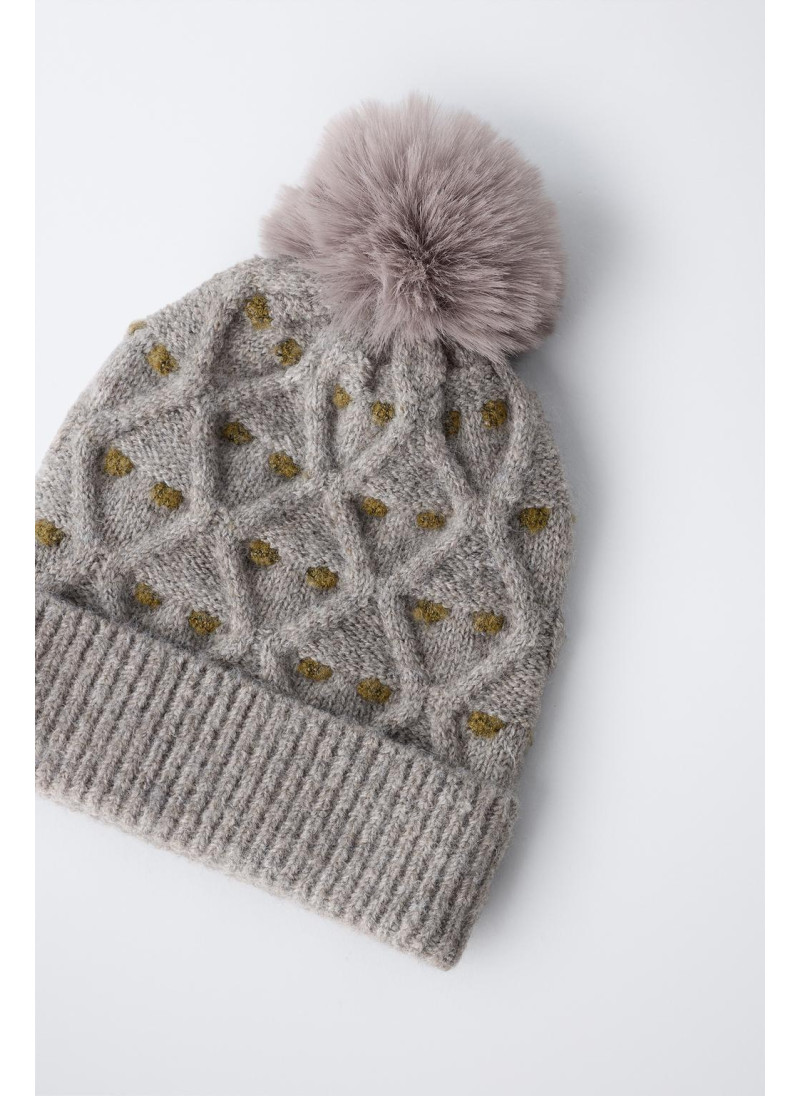 ТРИКОТАЖНАЯ ШАПКА В ГОРОШЕК С ПОМПОНОМ