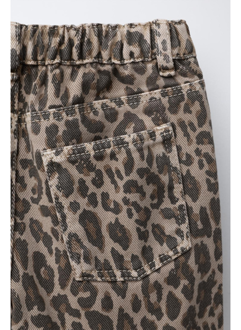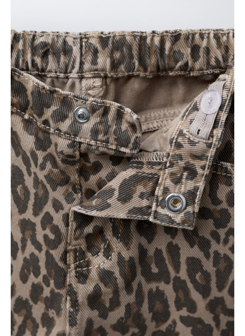 Брюки из саржи с регулируемым поясом, застежка на пуговицы. Передние карманы и накладные карманы сзади. Анималистический принт.