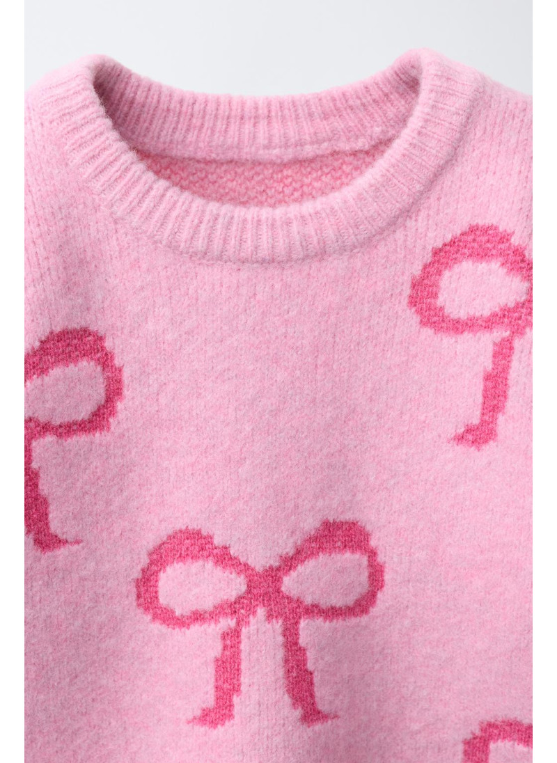 Вязаный джемпер с круглым вырезом и длинными рукавами. Принт «Банты»...