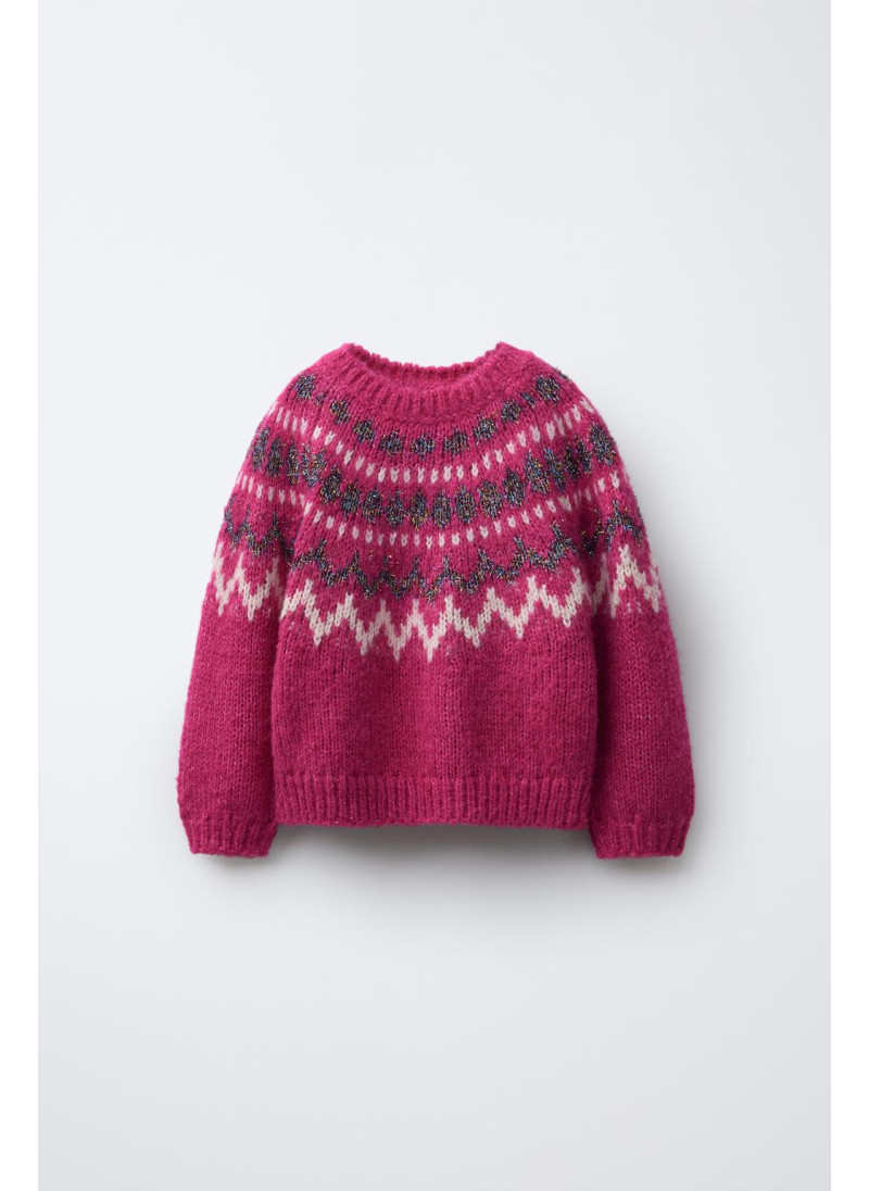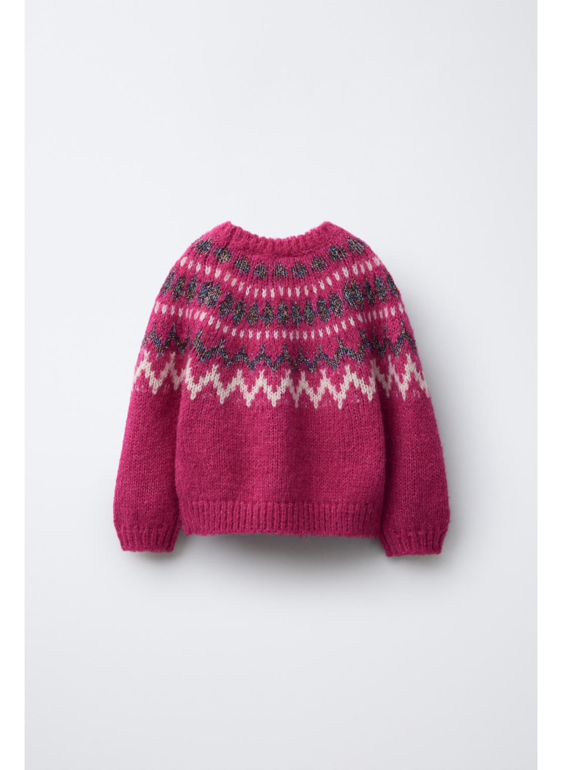 Вязаный свитер с круглым вырезом и длинными рукавами. Жаккардовый узор с блестками...