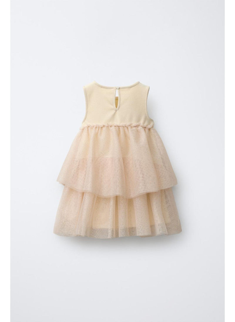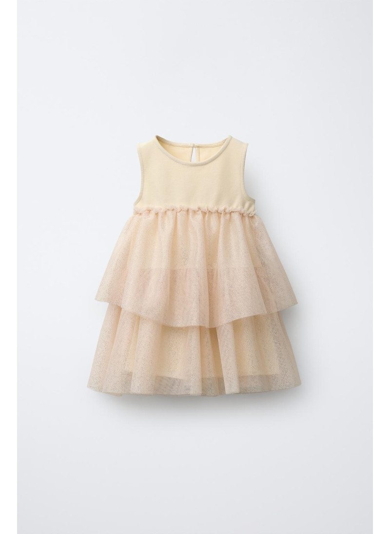 КОМБИНИРОВАННОЕ ПЛАТЬЕ ИЗ ПОЛУПРОЗРАЧНОЙ ТКАНИ С БЛЕСТКАМИ