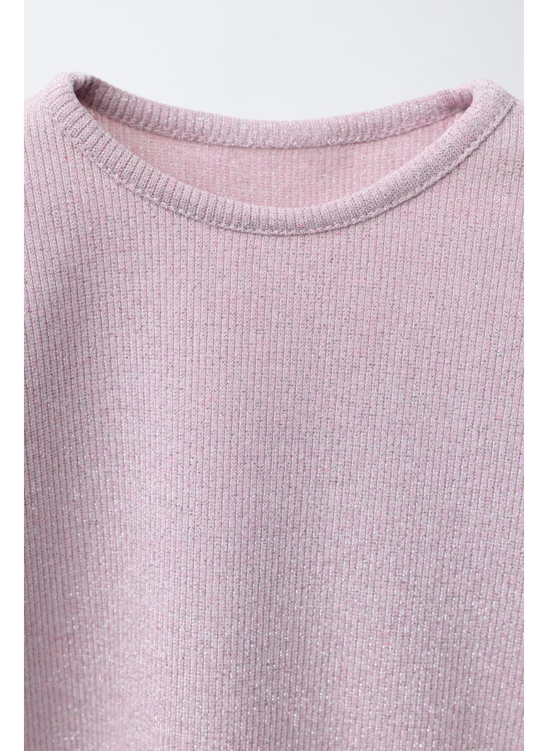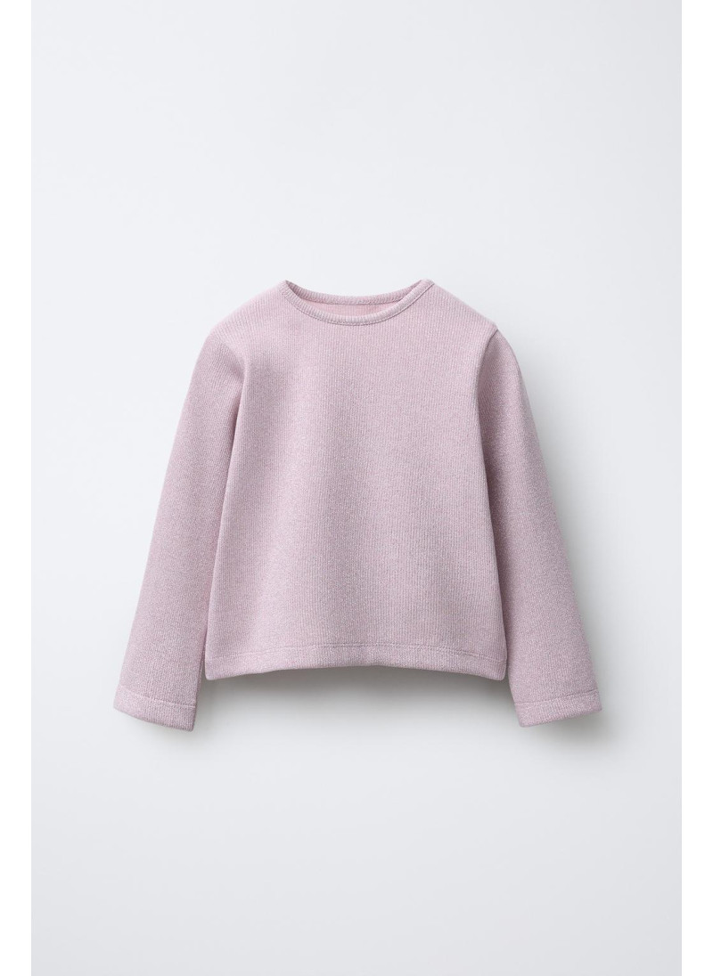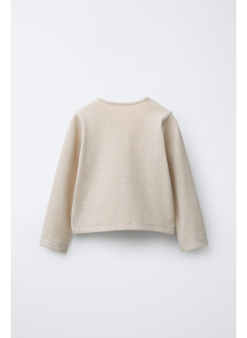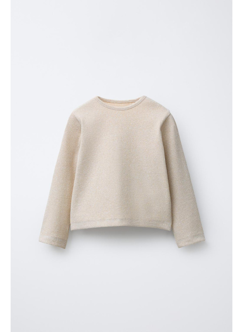 Майка в рубчик с круглым вырезом и длинными рукавами. Декорирована блестками. Ткань: 40% хлопок.