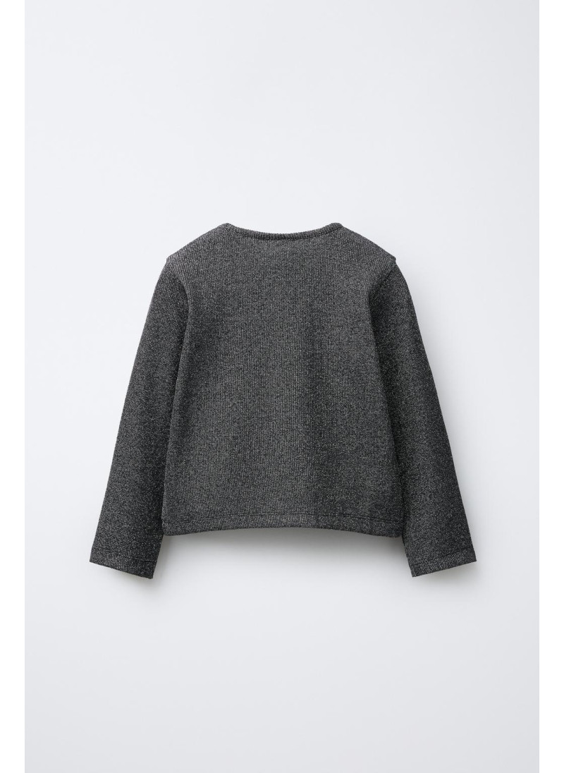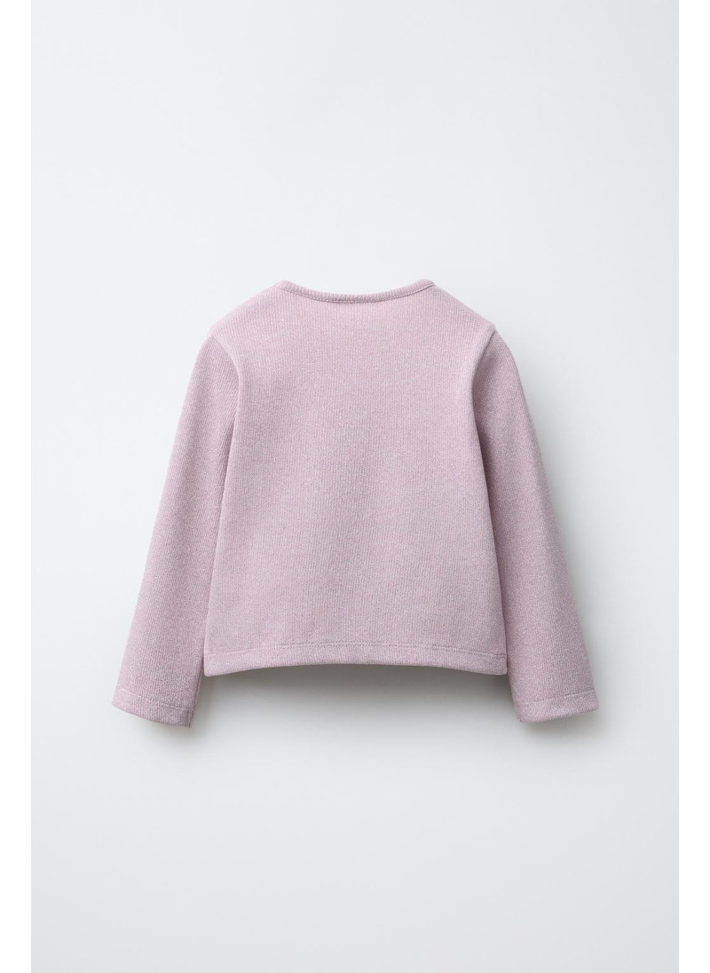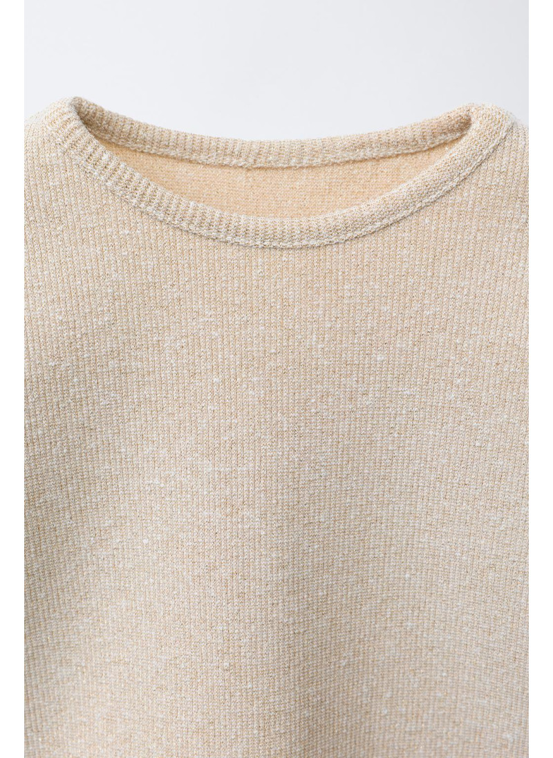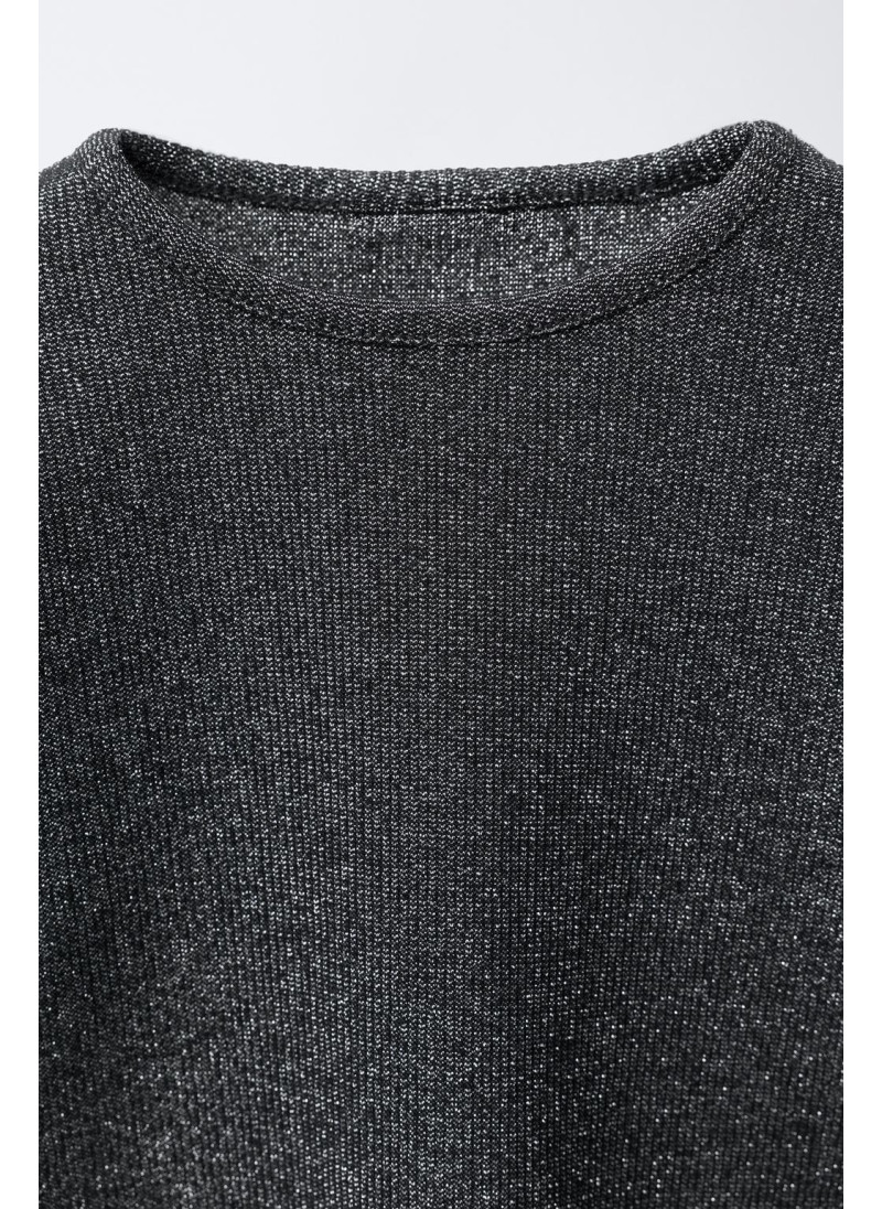 Майка в рубчик с круглым вырезом и длинными рукавами. Декорирована блестками. Ткань: 40% хлопок.