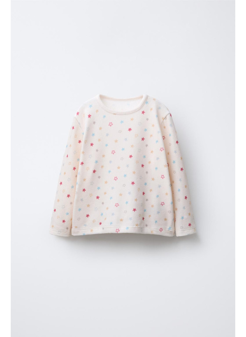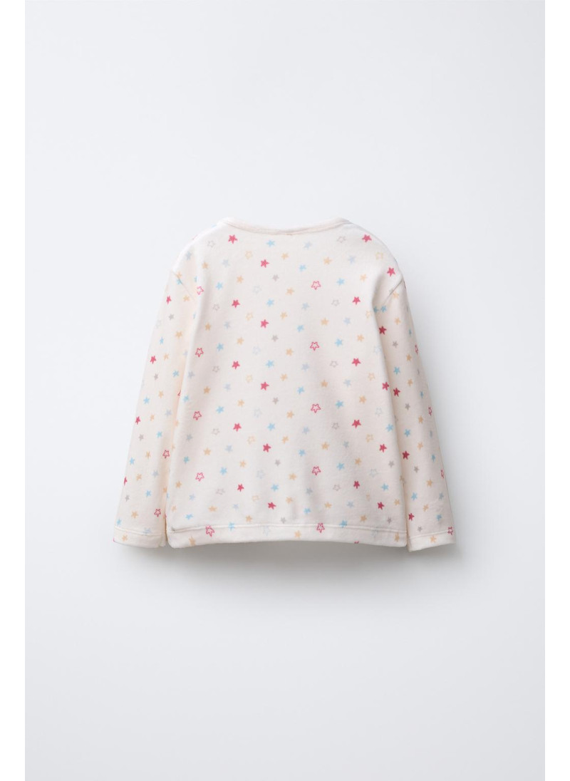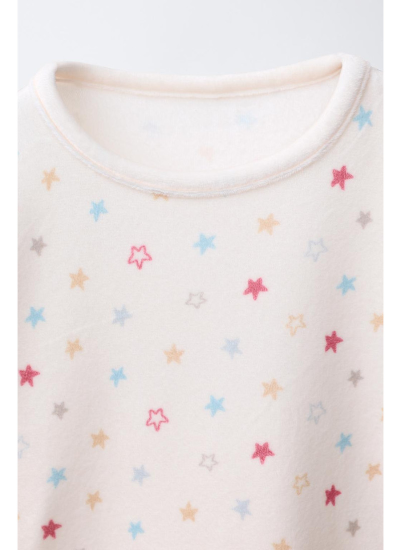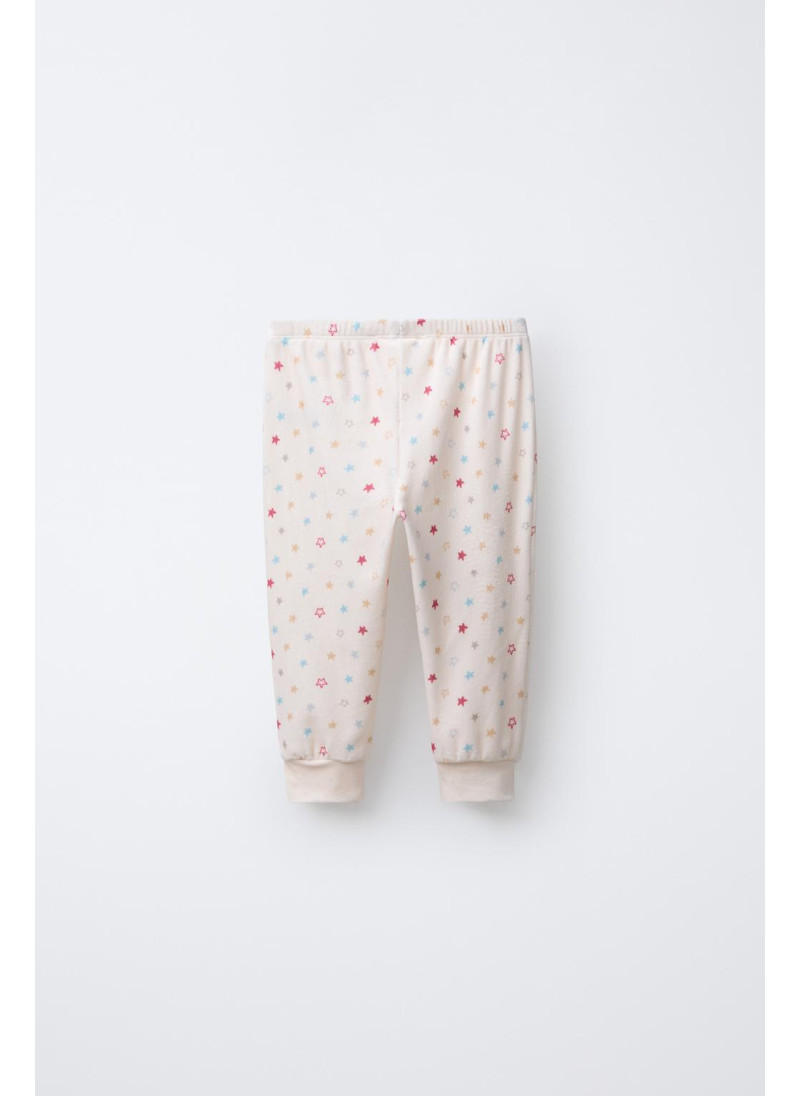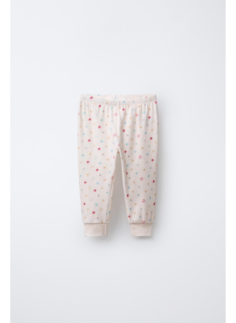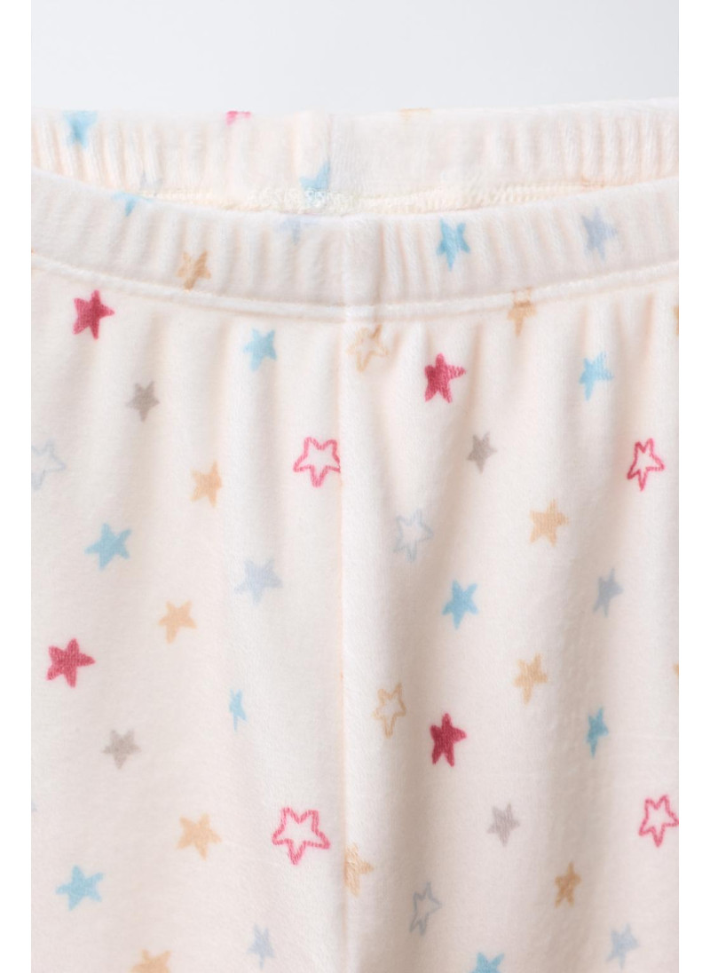 Комплект пижам из двух предметов. Футболка с круглым вырезом и длинным рукавом. Брюки с эластичным поясом и манжетами.