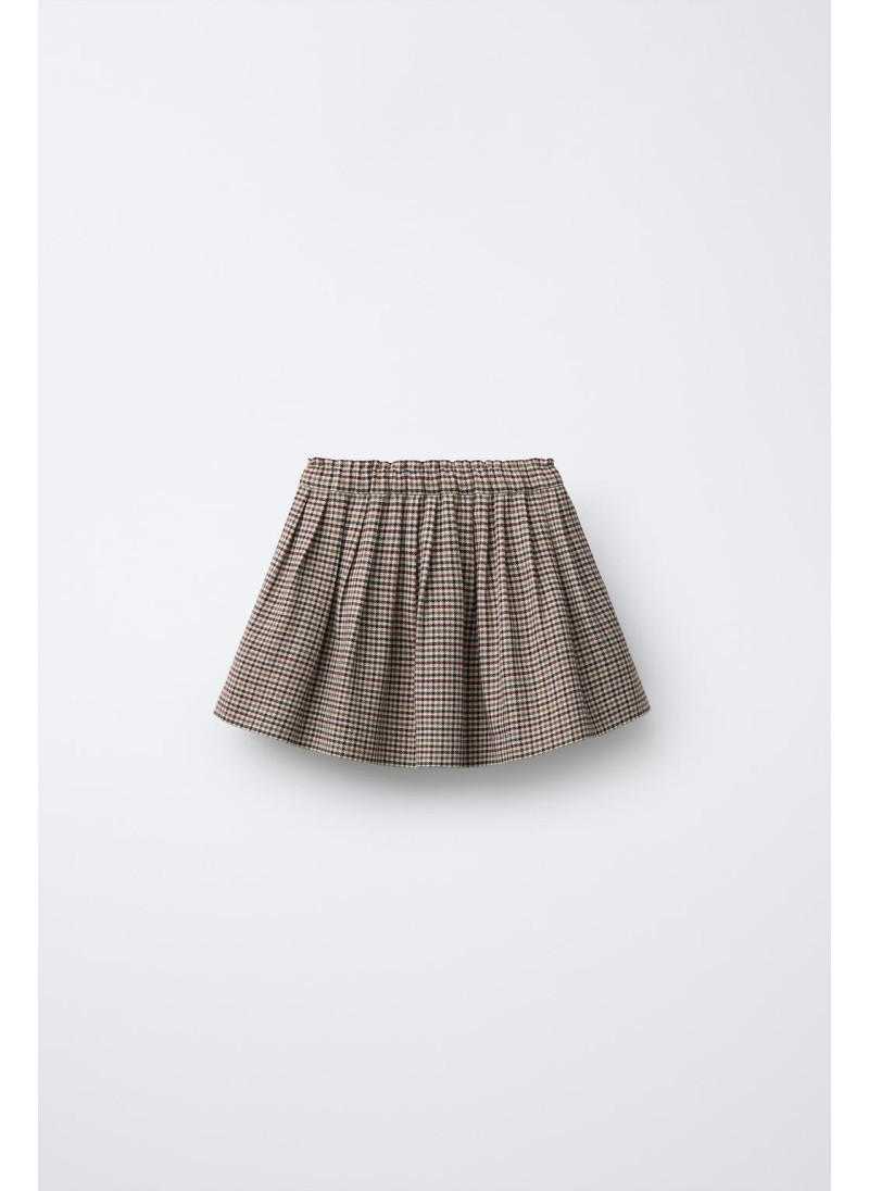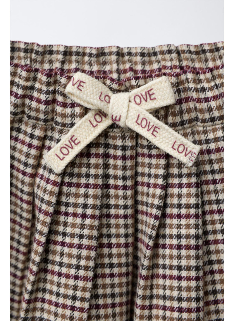 Юбка с эластичным поясом и бантом спереди. Принт в клетку.