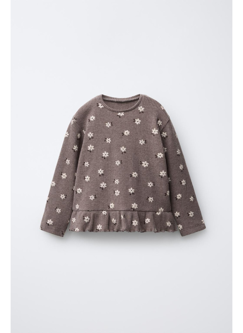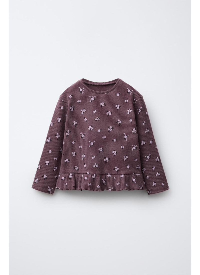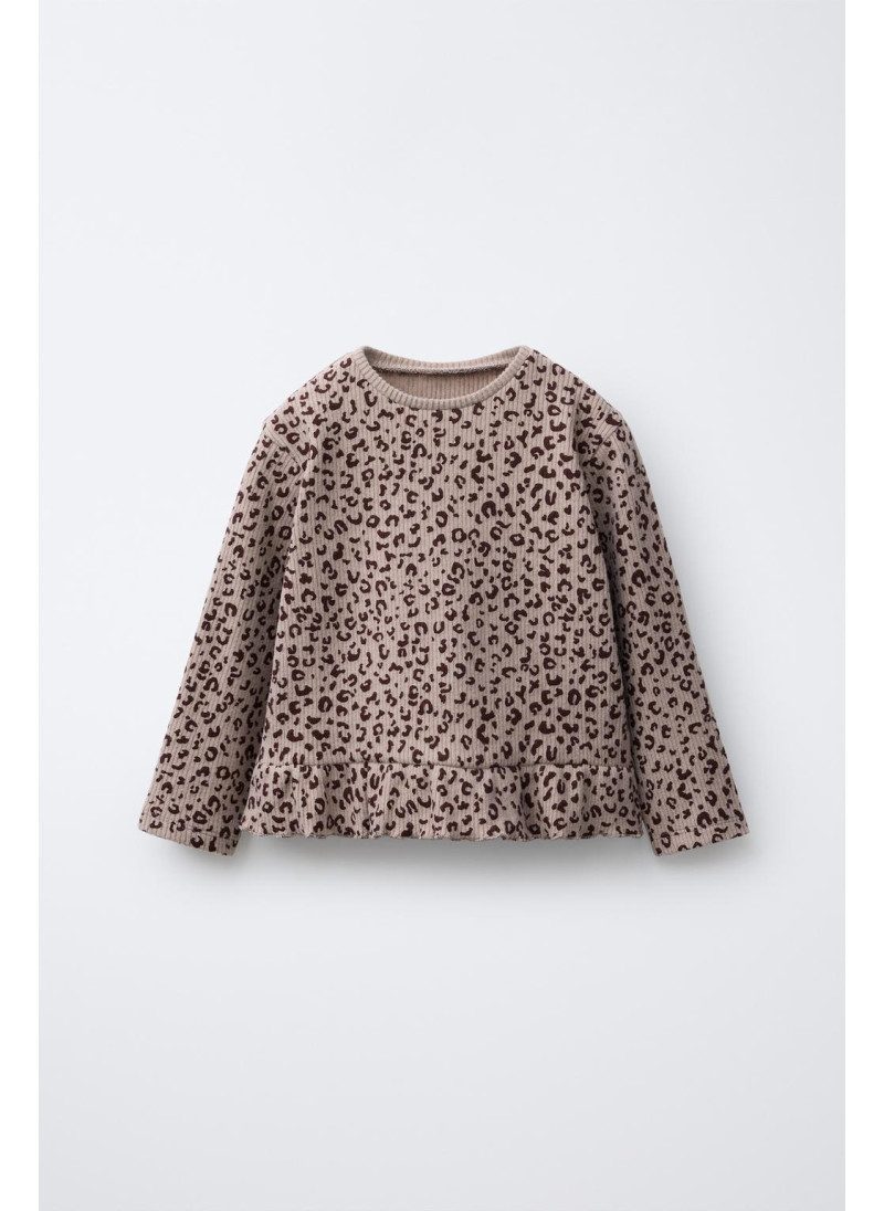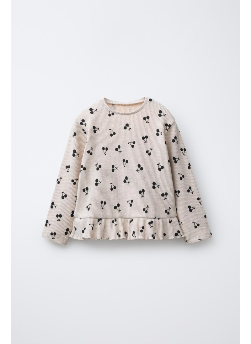 Футболка с круглым вырезом и длинными рукавами. Низ с оборками. Сплошной принт. Мягкая ткань soft touch, 50% хлопок.