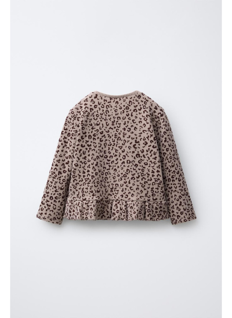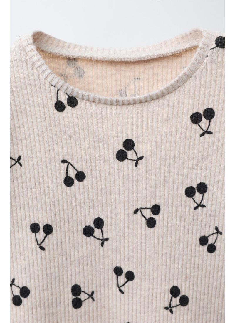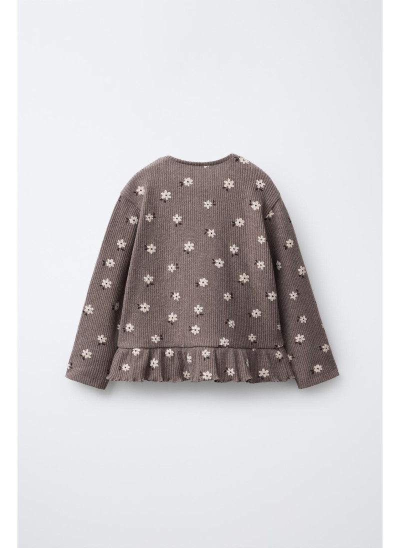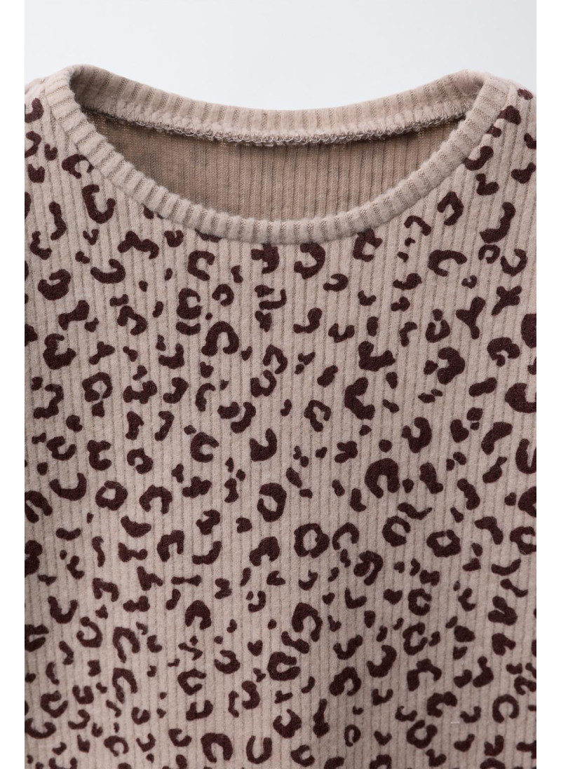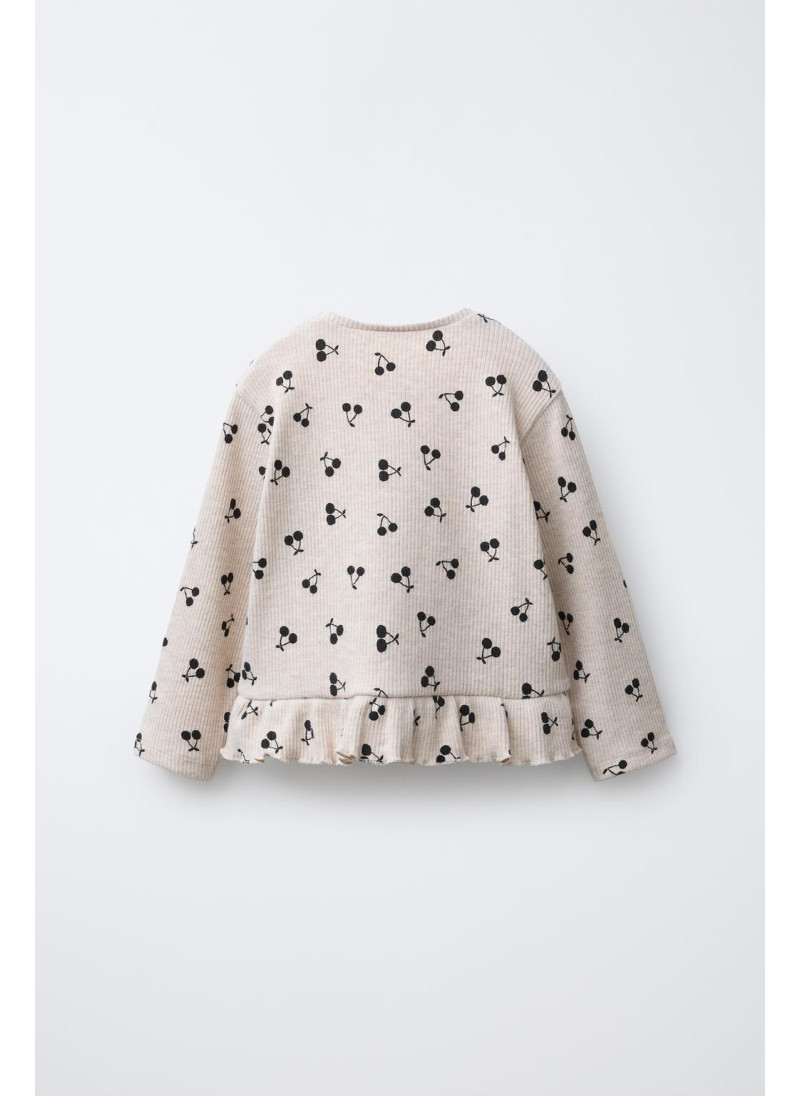 Футболка с круглым вырезом и длинными рукавами. Низ с оборками. Сплошной принт. Мягкая ткань soft touch, 50% хлопок.