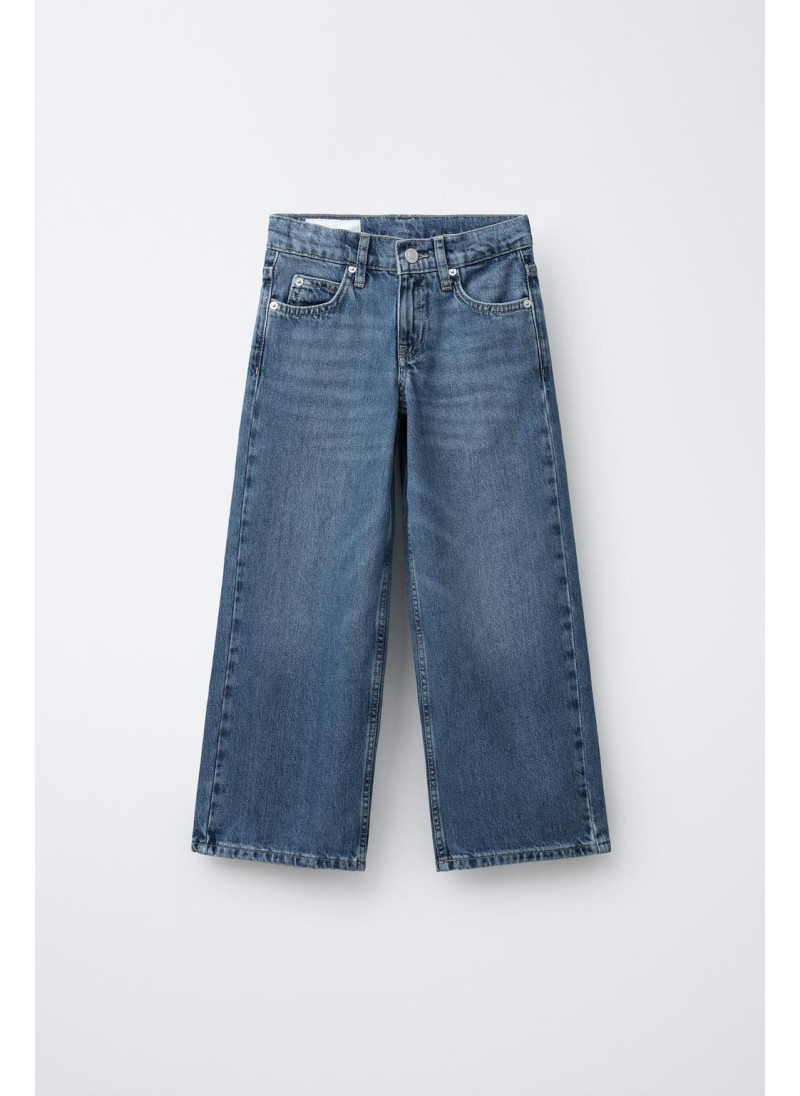 Джинсы с широкими штанинами с регулируемой внутренней талией и застежкой на пуговицу спереди. Передние карманы и накладные карманы на задней части с нашивками в виде звезд с животным принтом...
