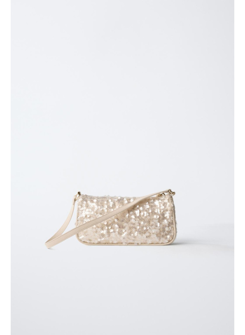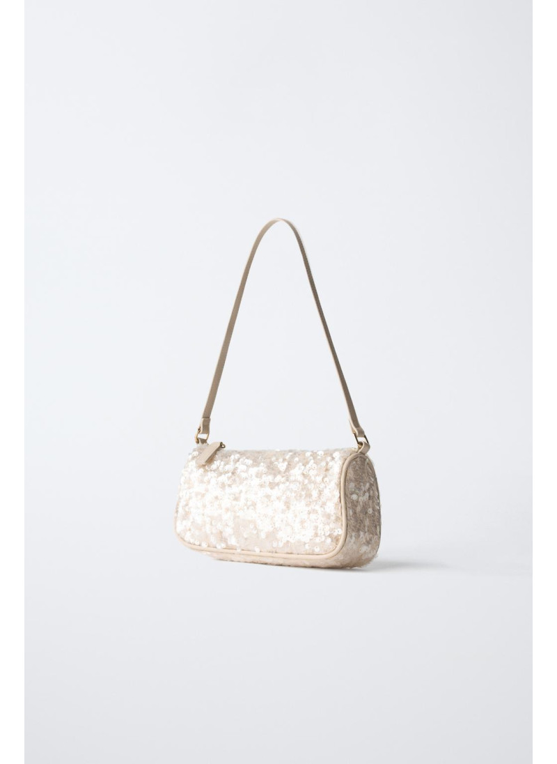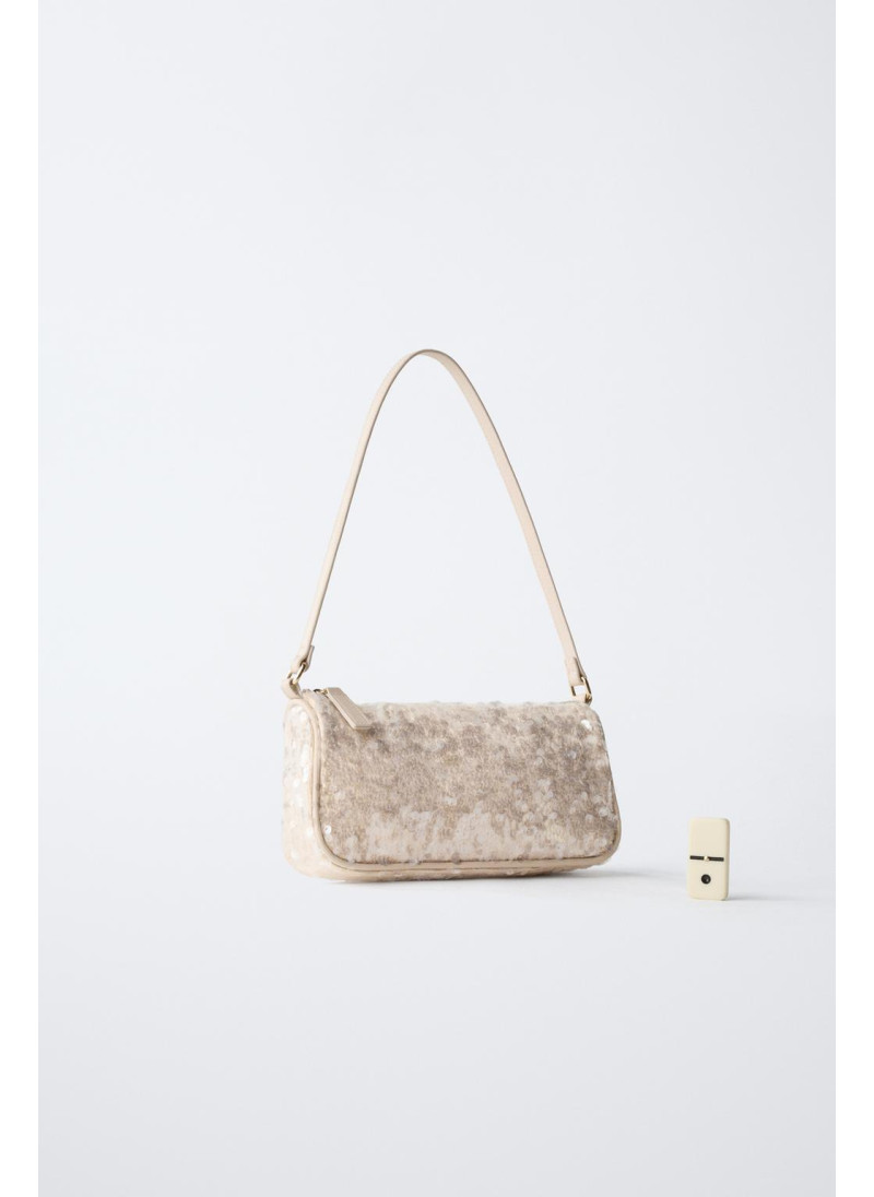 Сумка на плечо с деталями из пайеток. Застежка на молнии. Регулируемый плечевой ремень.