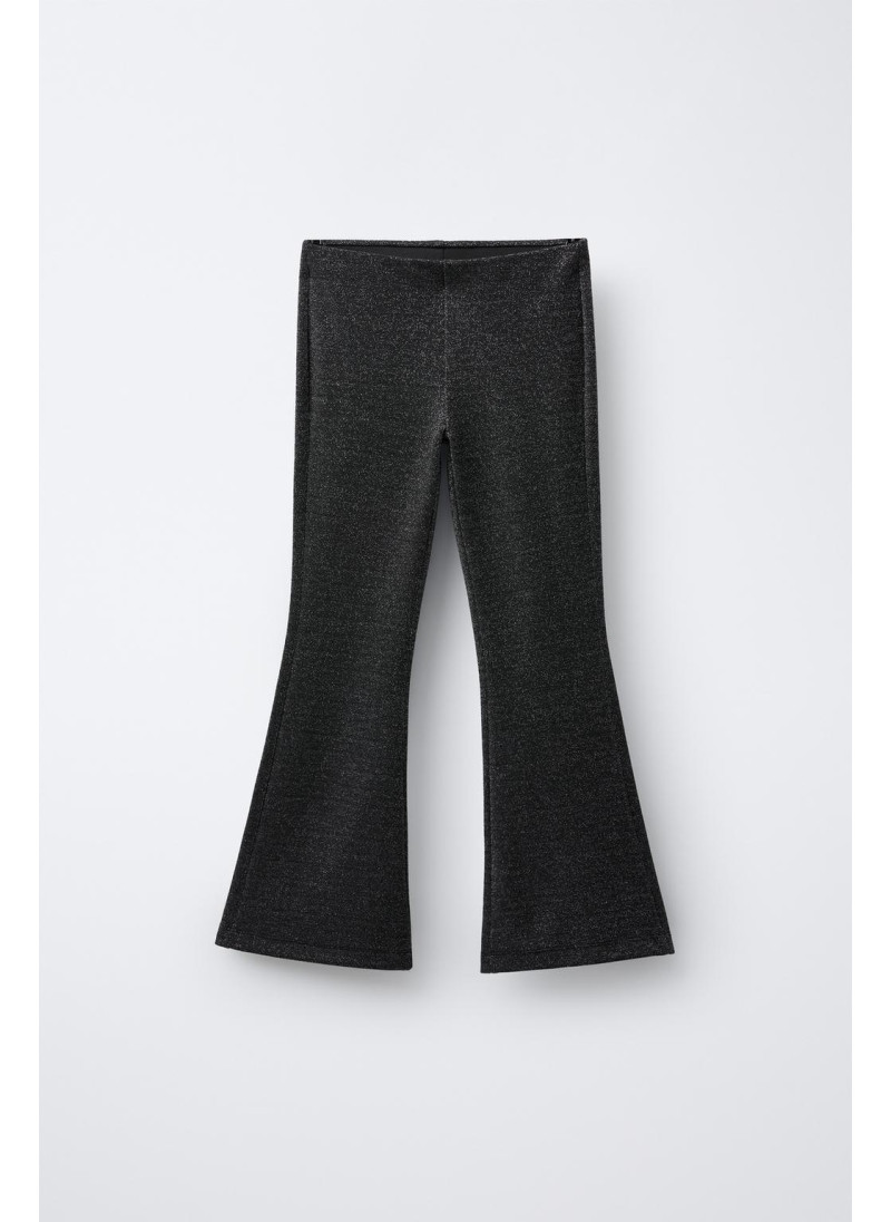 Леггинсы в стиле расклешенных с эластичным поясом. С блестящими деталями. Модель ростом 154 см носит размер 12-13.