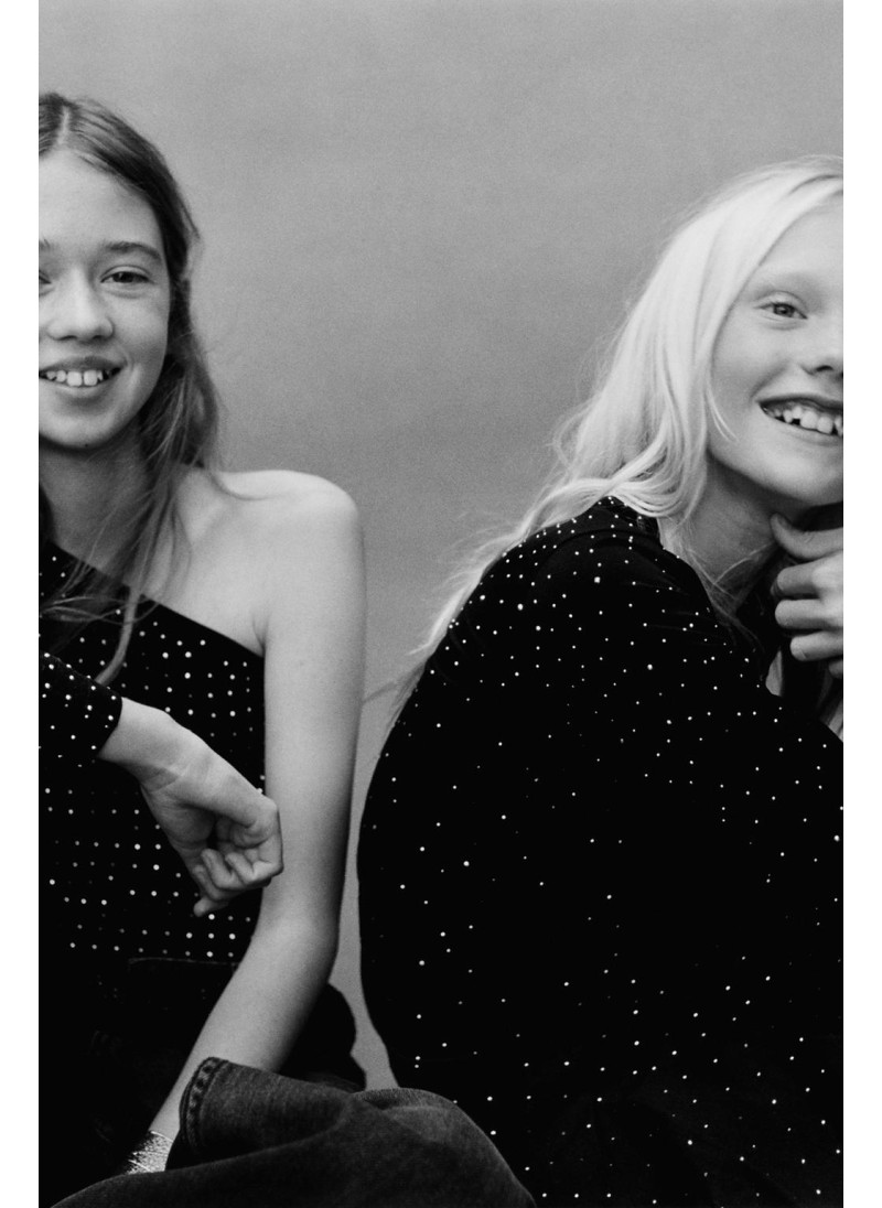 Футболка с асимметричным вырезом и длинными рукавами. Отделка стразами. Рост модели — 151 см, размер — 11–12 лет...