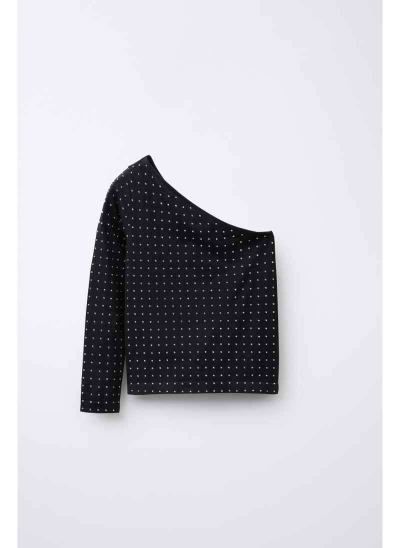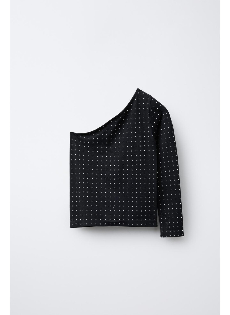 БЕСШОВНАЯ АСИММЕТРИЧНАЯ ФУТБОЛКА СО СТРАЗАМИ