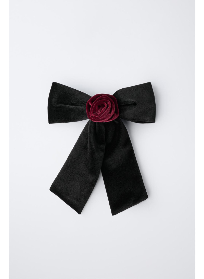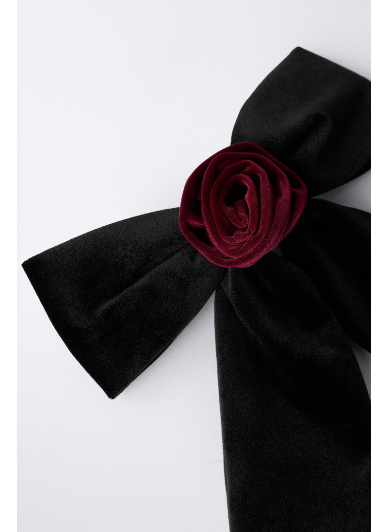 БАРХАТНЫЙ БАНТ ДЛЯ ВОЛОС С ЦВЕТКОМ