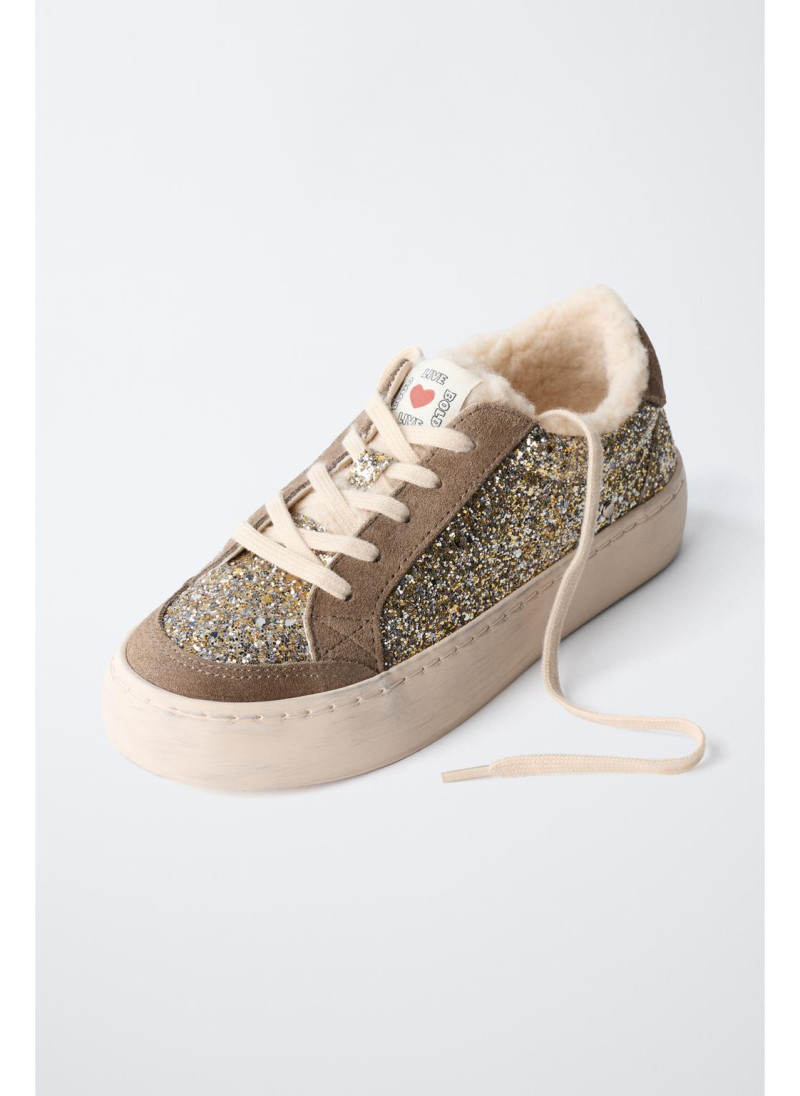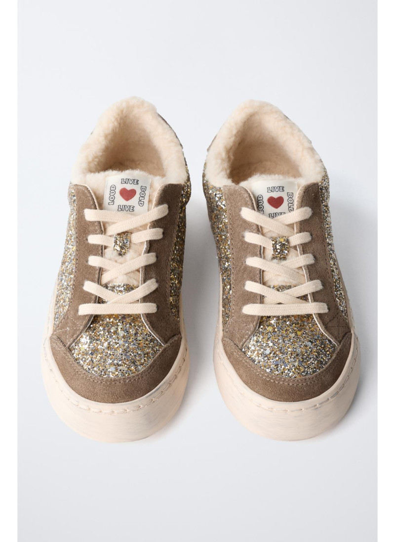 Кроссовки с блестящими элементами. Внутренняя подкладка из искусственной овчины. Регулируемая шнуровка. Гибкая стелька. Объемная резиновая подошва. STARFIT®..