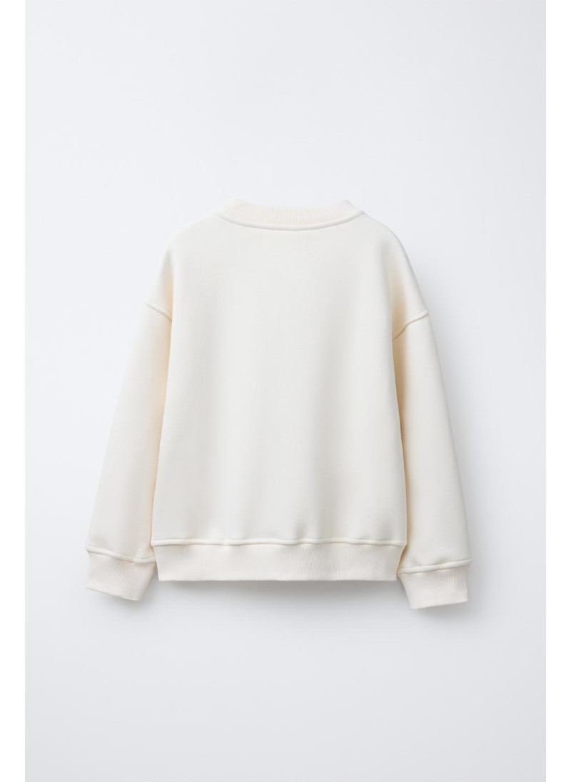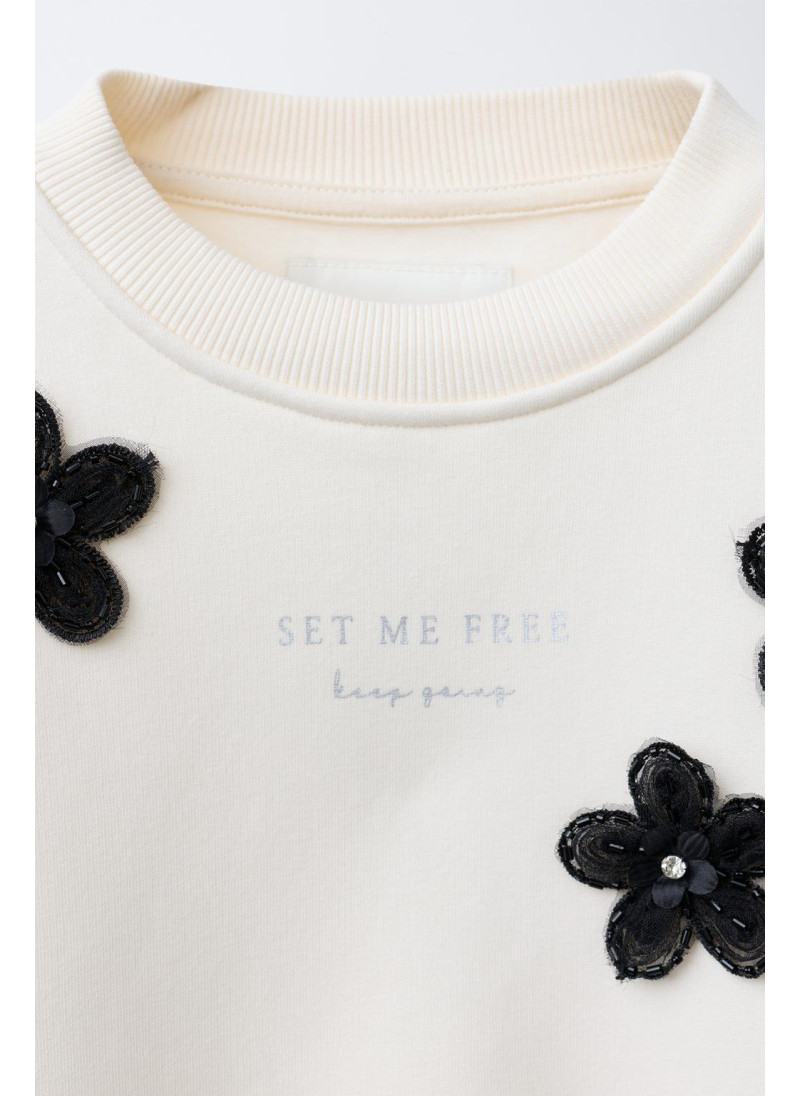 Толстовка с круглым вырезом и длинными рукавами. Детали в рубчик. Аппликация в виде цветов с бусинами и текстовый принт спереди. Мягкая и теплая внутренняя отделка. Ткань на 62% состоит из хлопка.
