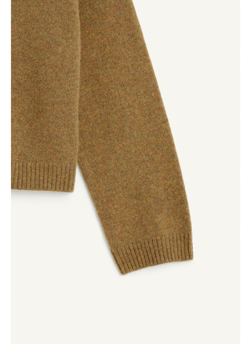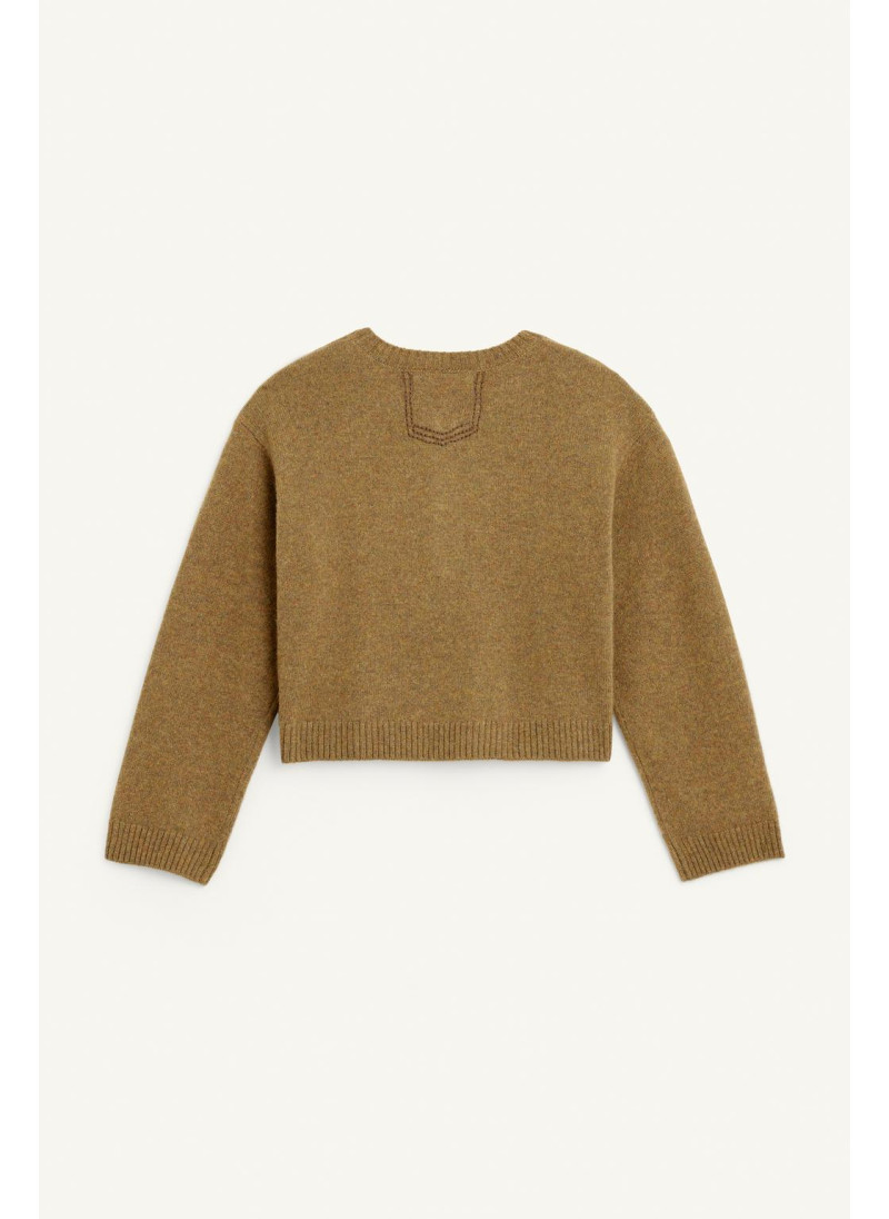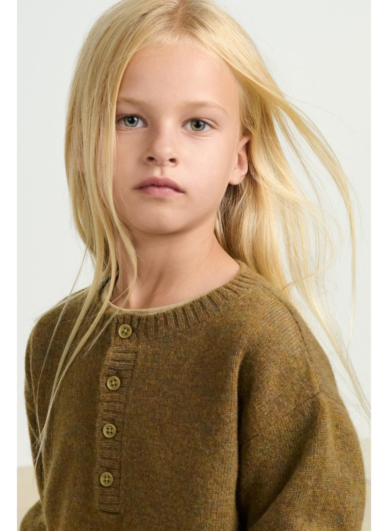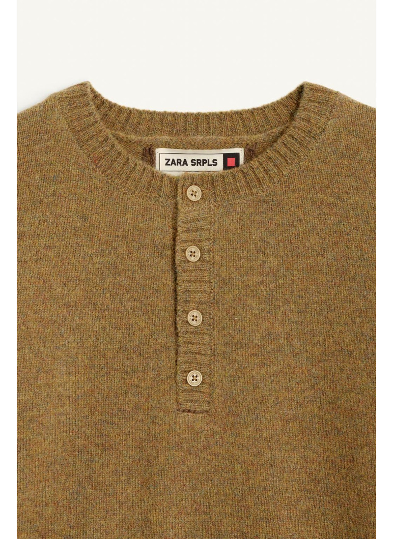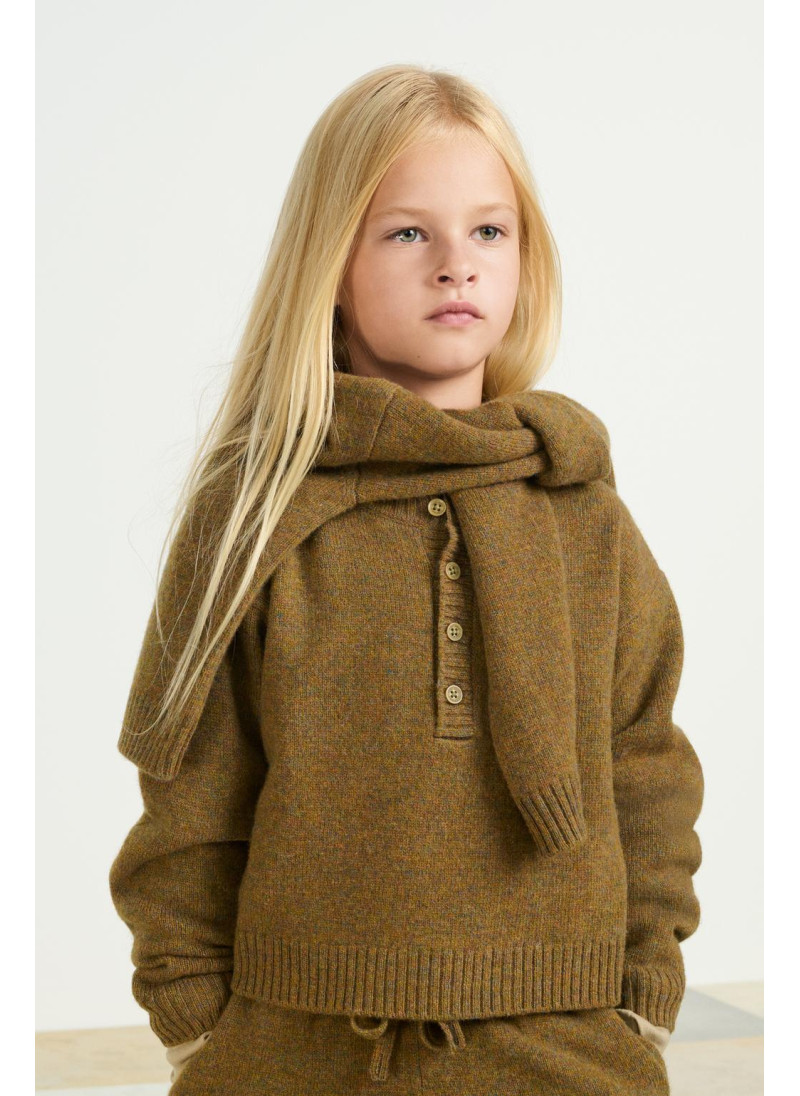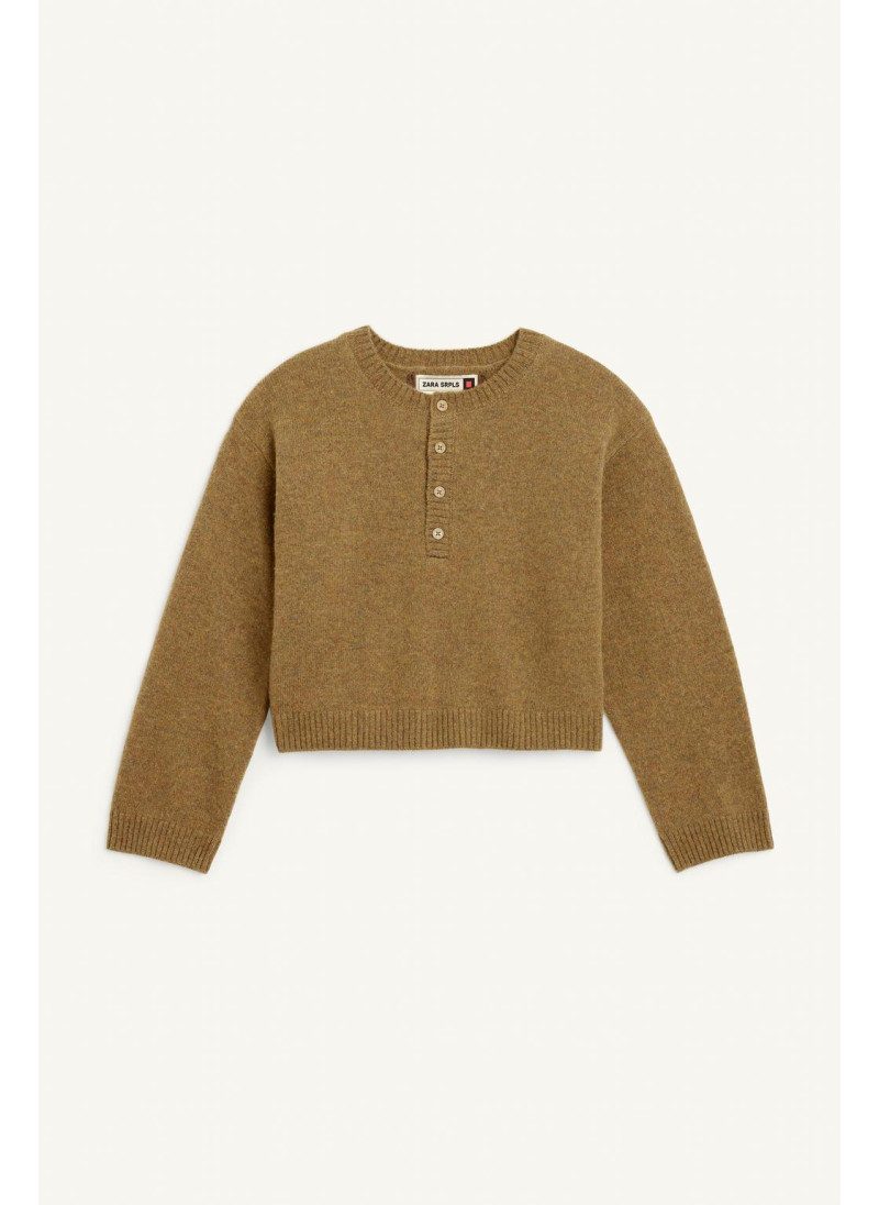 Джемпер из шерсти с отложным воротником и длинными рукавами. Застежка на пуговицы на передней части воротника. Изготовлен из 100% шерсти.