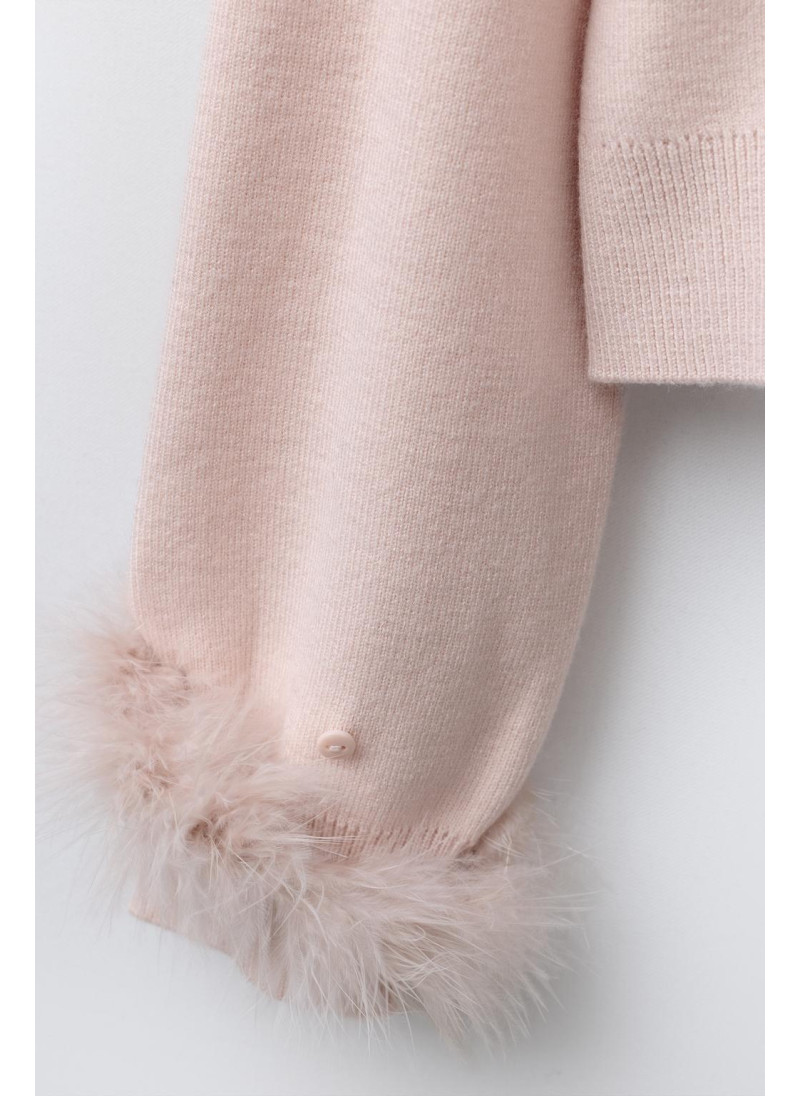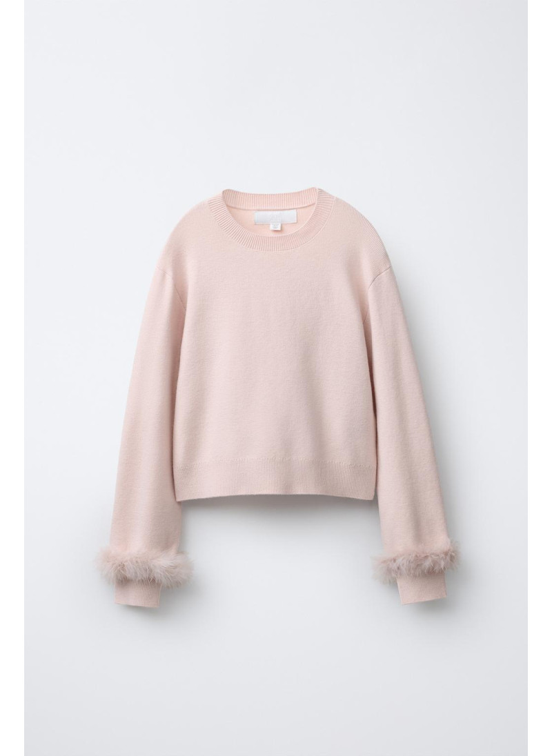 Пуловер из вязаного полотна с перьями