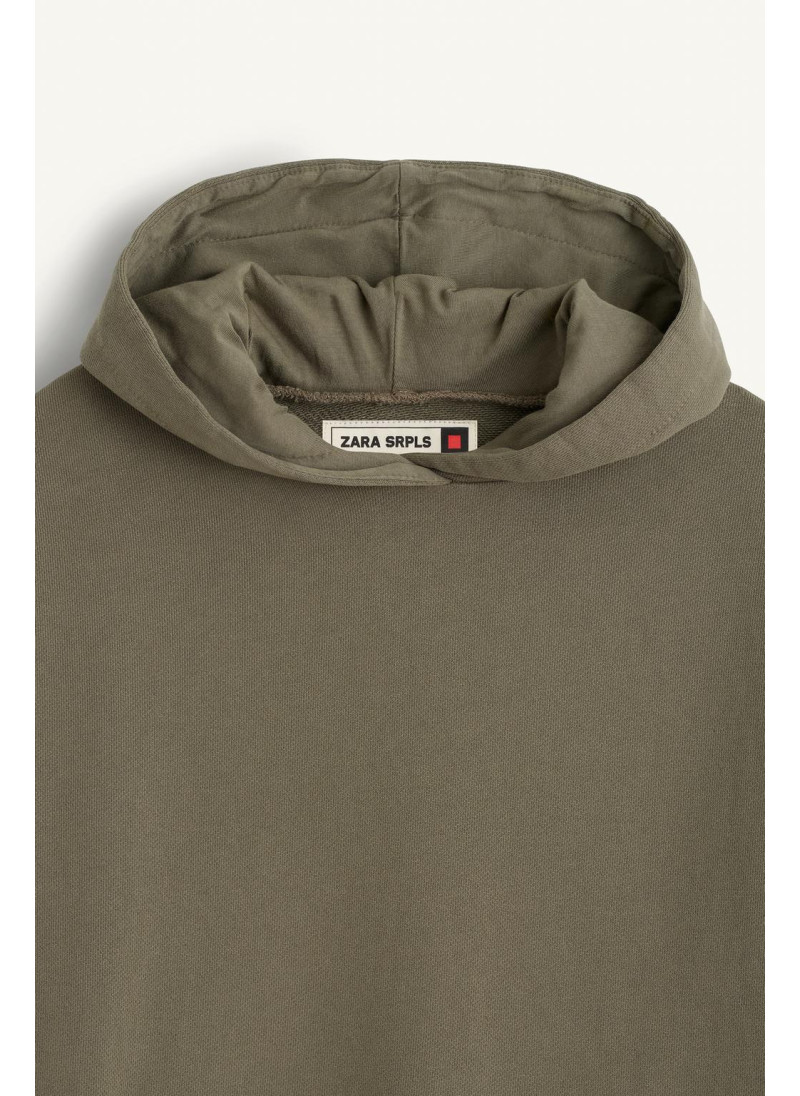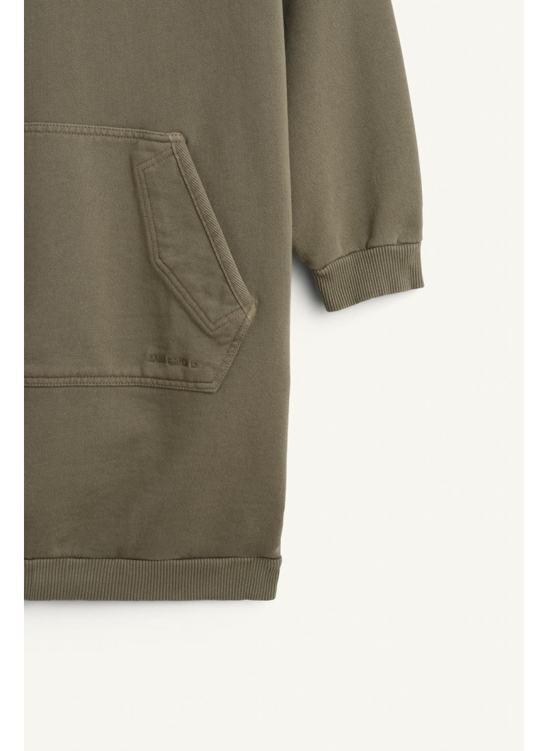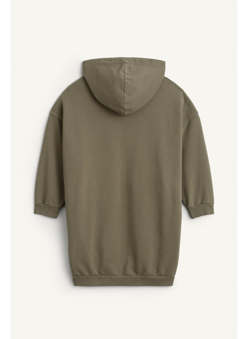 Плюшевое платье с капюшоном и манжетами три четверти. Карман-кенгуру спереди. Эластичный низ. Ткань 100% хлопок.