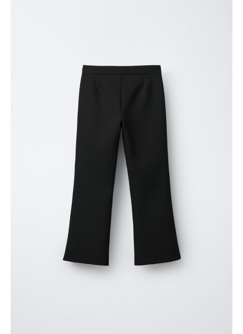 Прямые брюки с регулируемым внутренним поясом и застежкой на пуговицу спереди. Имеют передние накладные карманы с нашивками из цветочных аппликаций и драгоценными деталями...