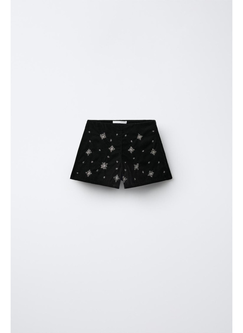 БАРХАТНЫЕ ШОРТЫ-БЕРМУДЫ С БУСИНАМИ