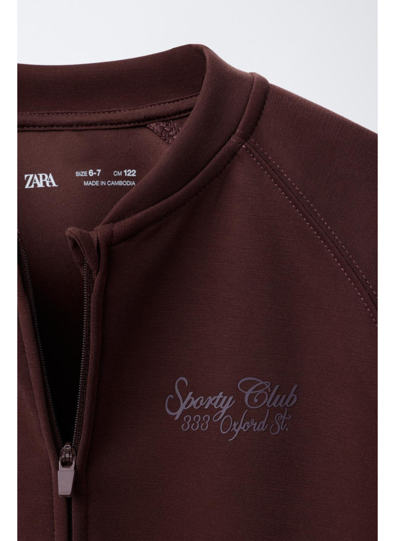 Пиджак с длинным рукавом и круглым воротником. Застежка на молнию спереди. Передние карманы с деталями отделки и текстурированным принтом слогана на груди...