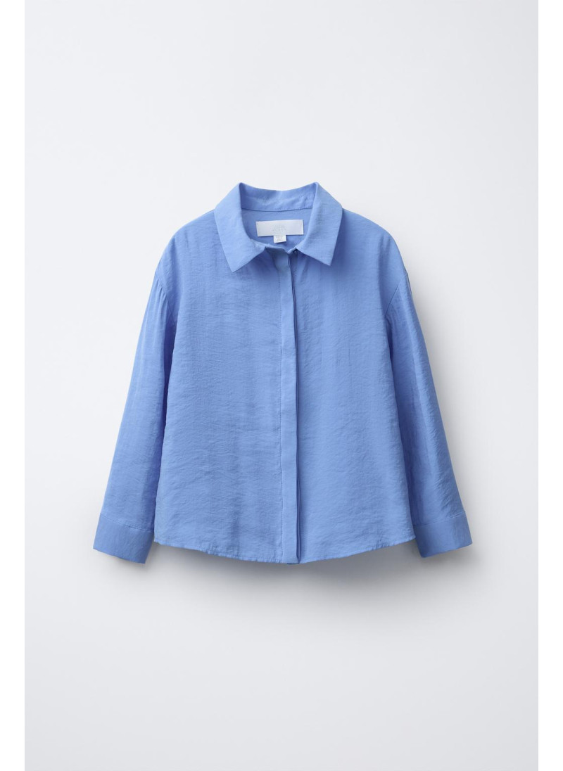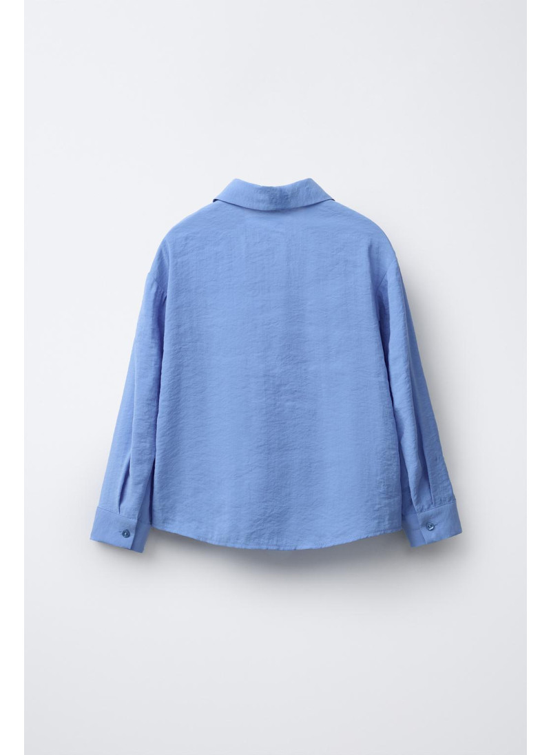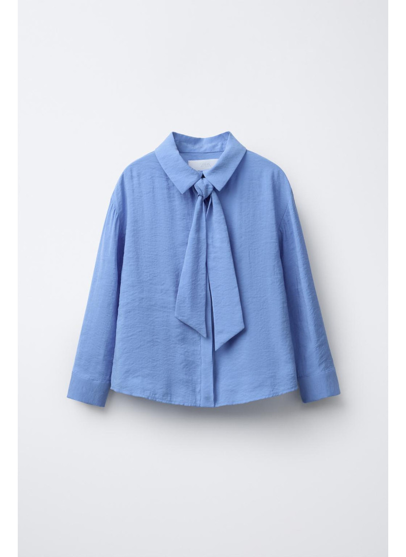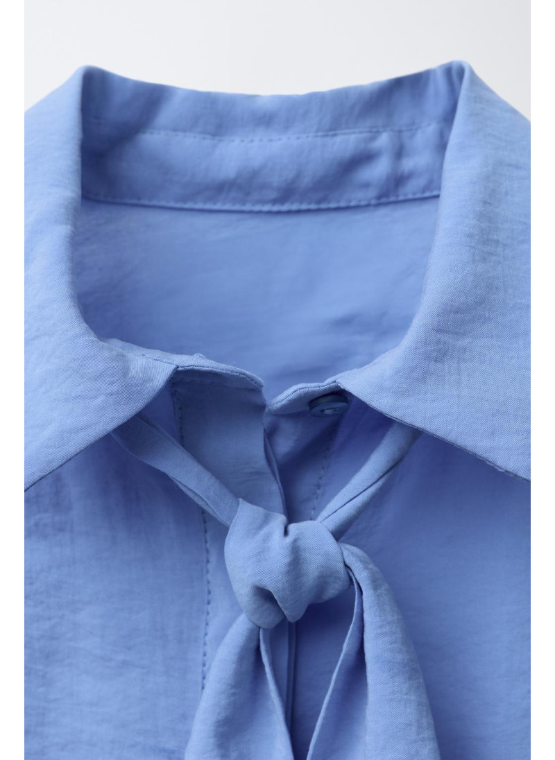 Рубашка с отложным воротником с аппликацией в виде галстука и длинными рукавами. Потайная застежка на пуговицы спереди.