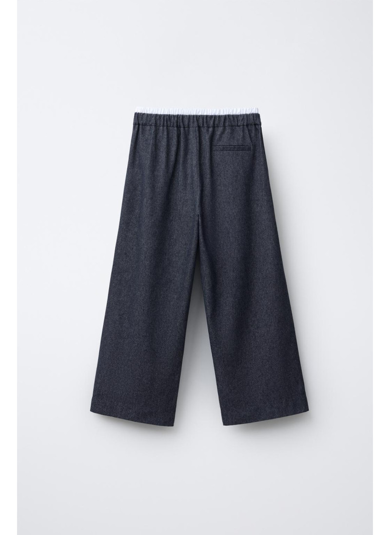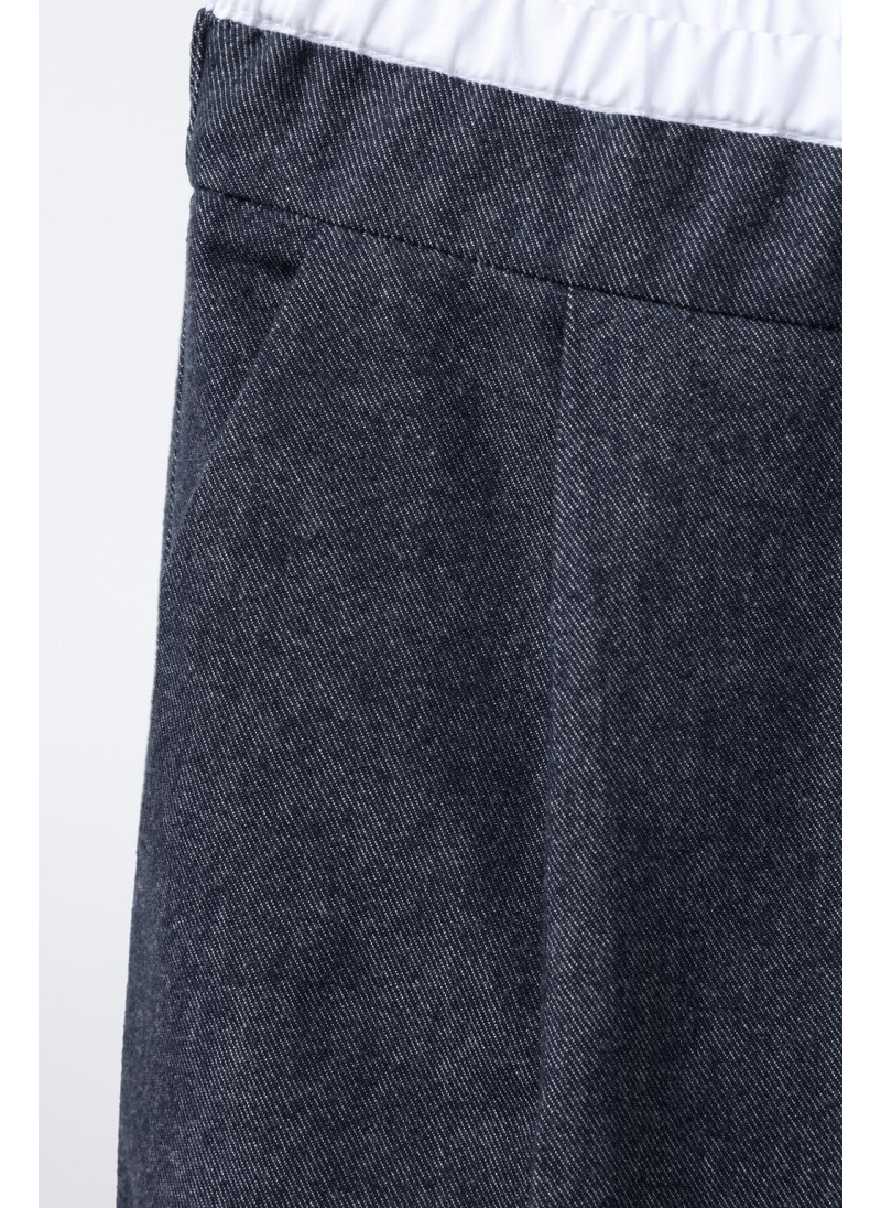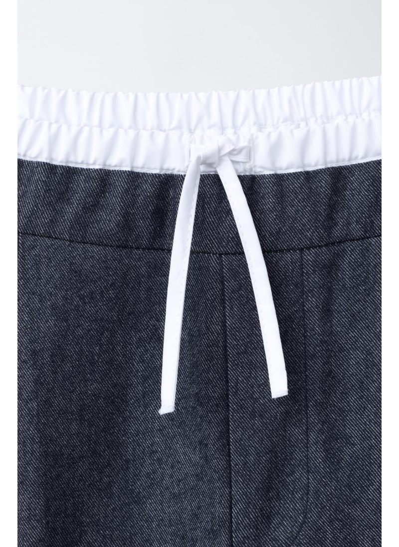 Брюки с двойной эластичной поясной резинкой и декоративным завязывающим шнурком спереди. Передние карманы и отделка трубками на задней части. С передними вытачками. Теплая ткань.