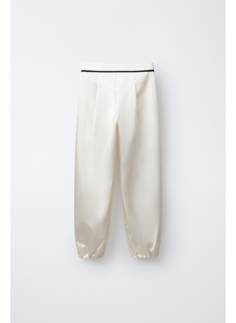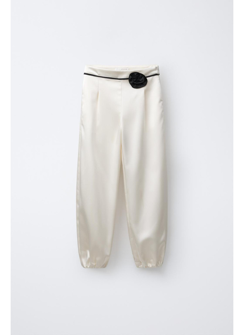 Брюки Sarouel с регулируемой внутренней резинкой и скрытой молнией по боковому шву. Имеют контрастную отделку и цветочное апплике спереди. Боковые карманы в швах. Эластичные манжеты.