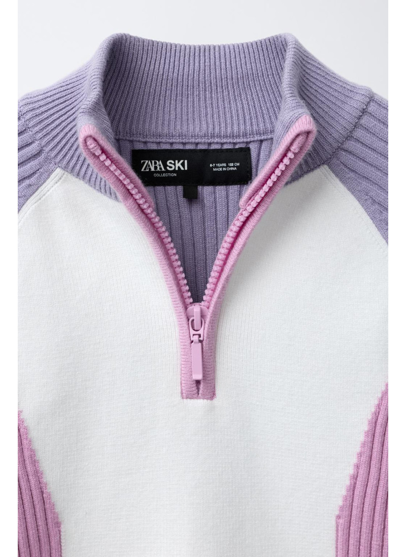 Джемпер в стиле colour block с высоким воротником, молнией и длинными рукавами.