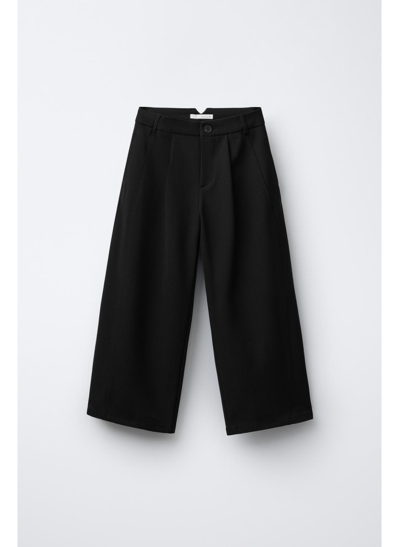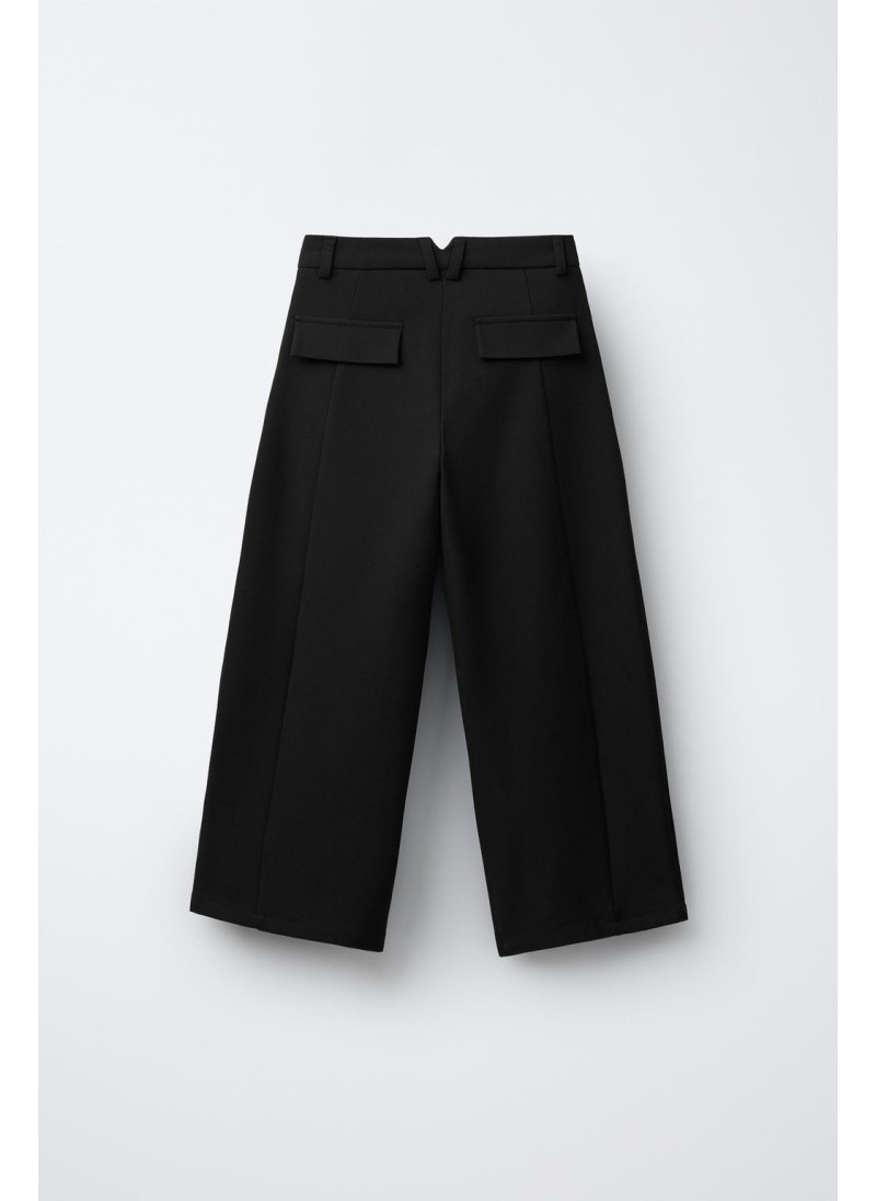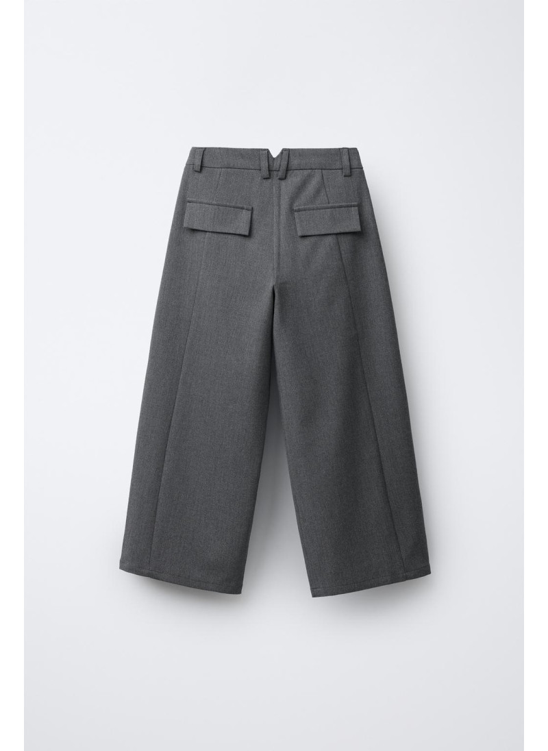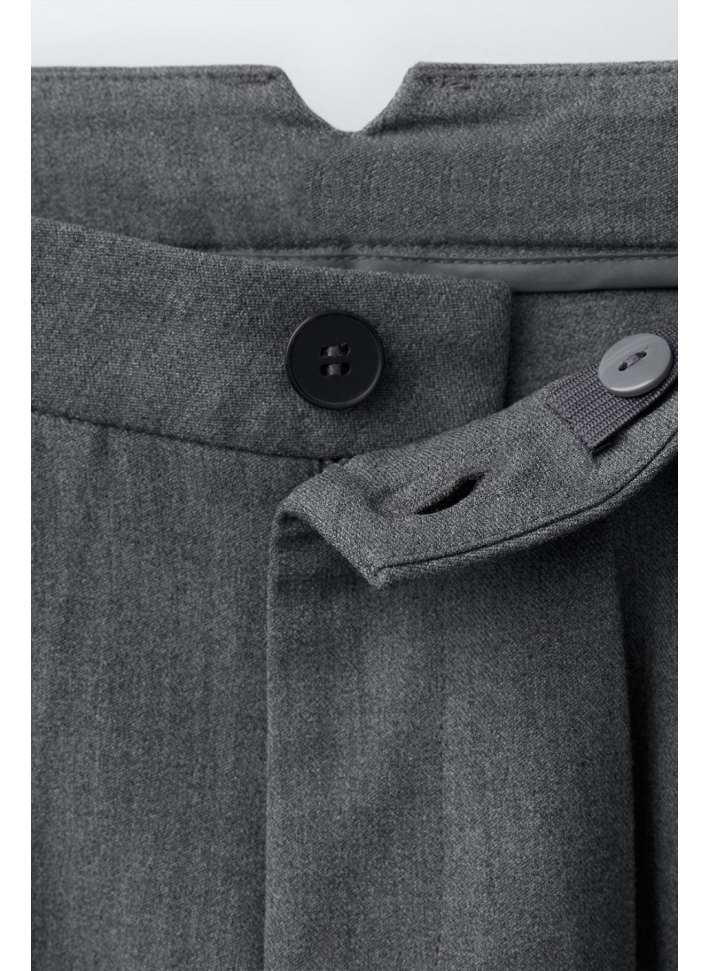 Брюки бочонкового покроя с регулируемой внутренней резинкой и застежкой на переднюю пуговицу. Представлены с передними карманами, фиктивным клапаном сзади и передней застрочкой.