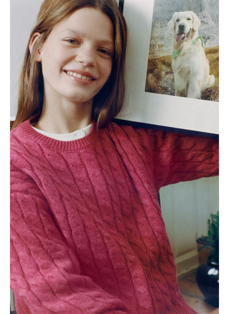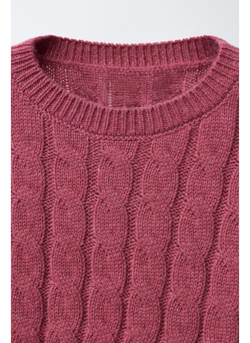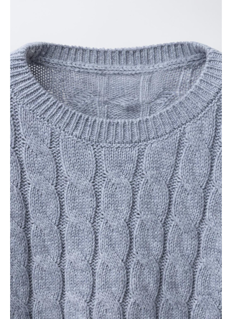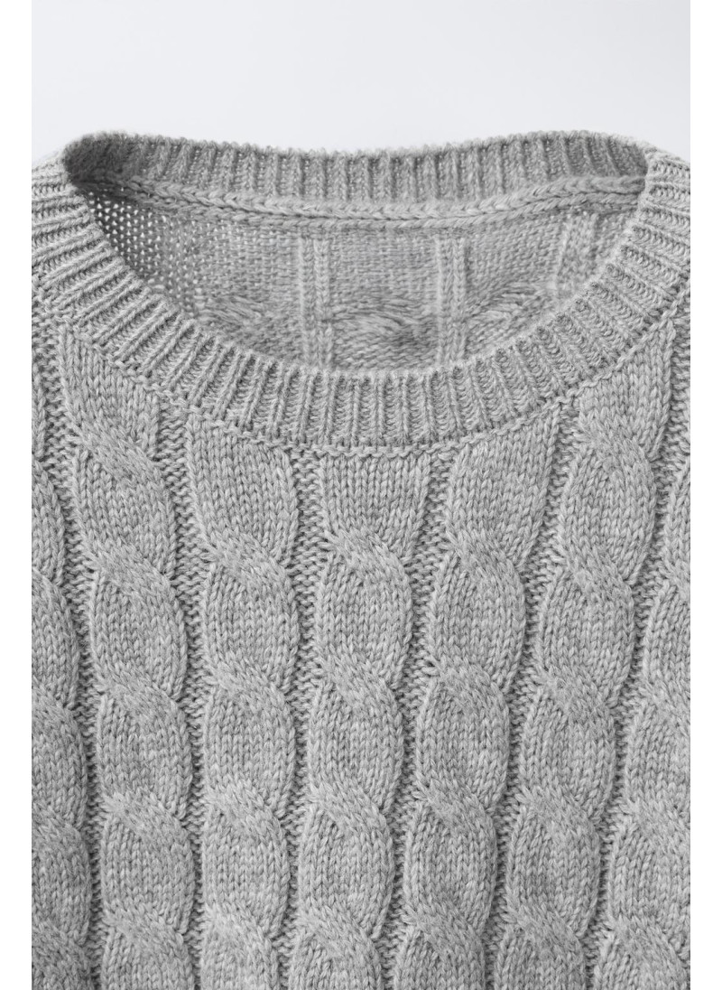 Вязаный свитер с узором «косы», круглым вырезом и длинными рукавами.