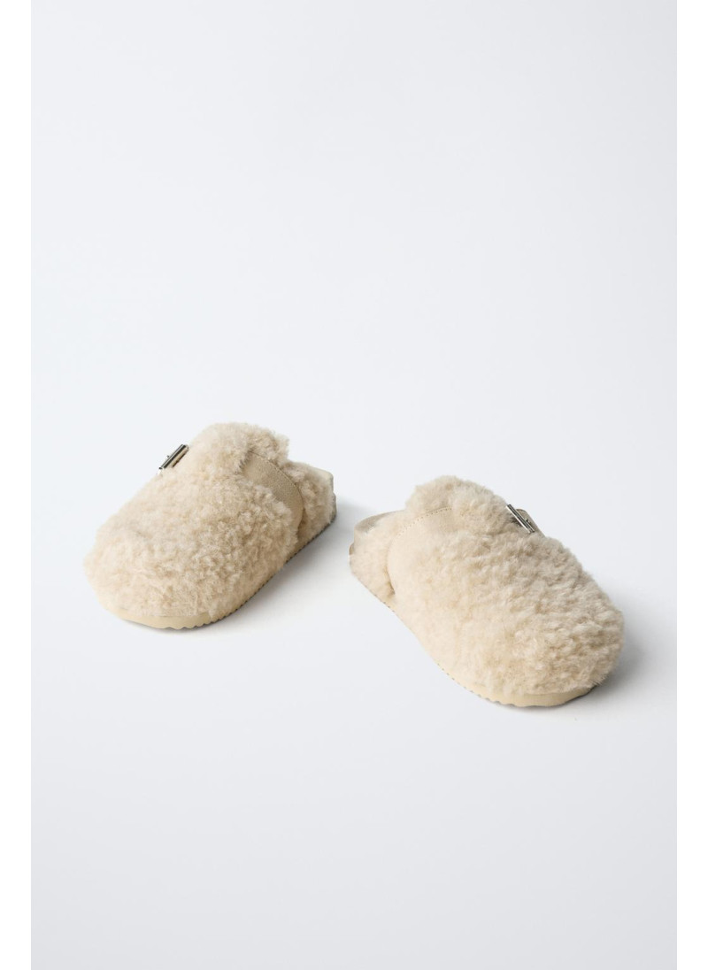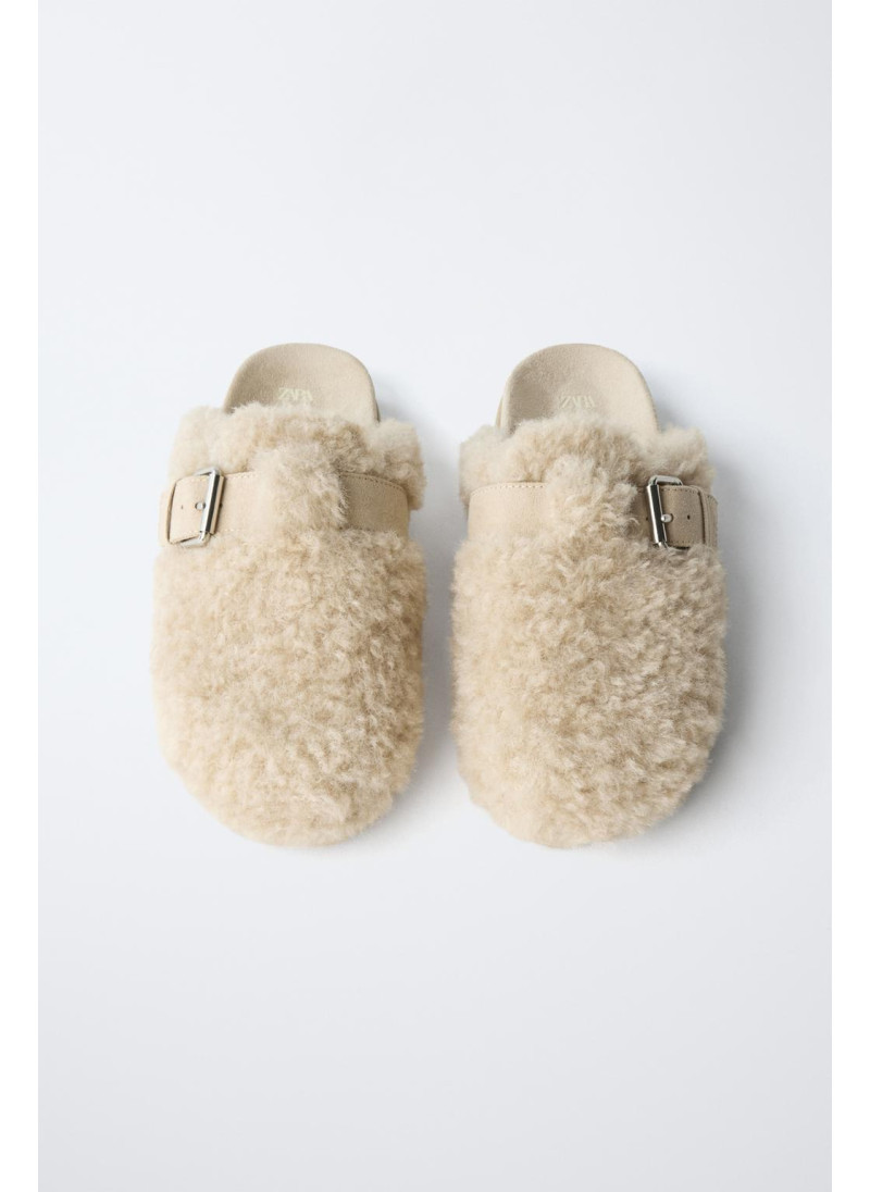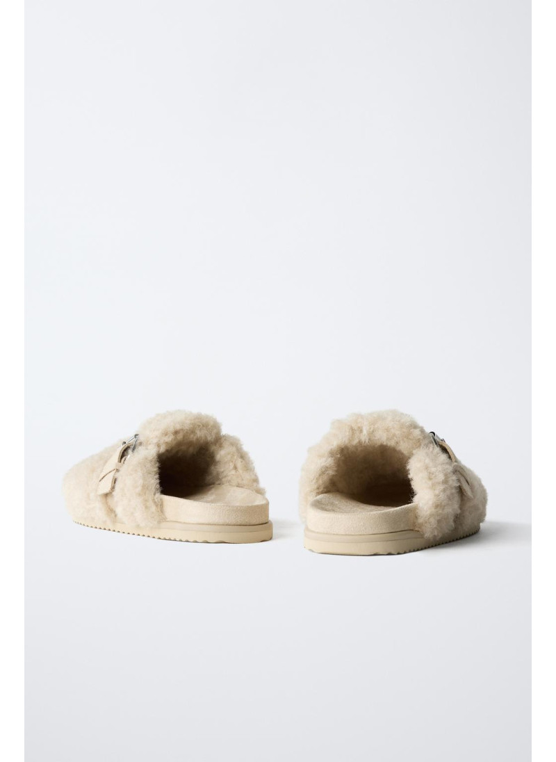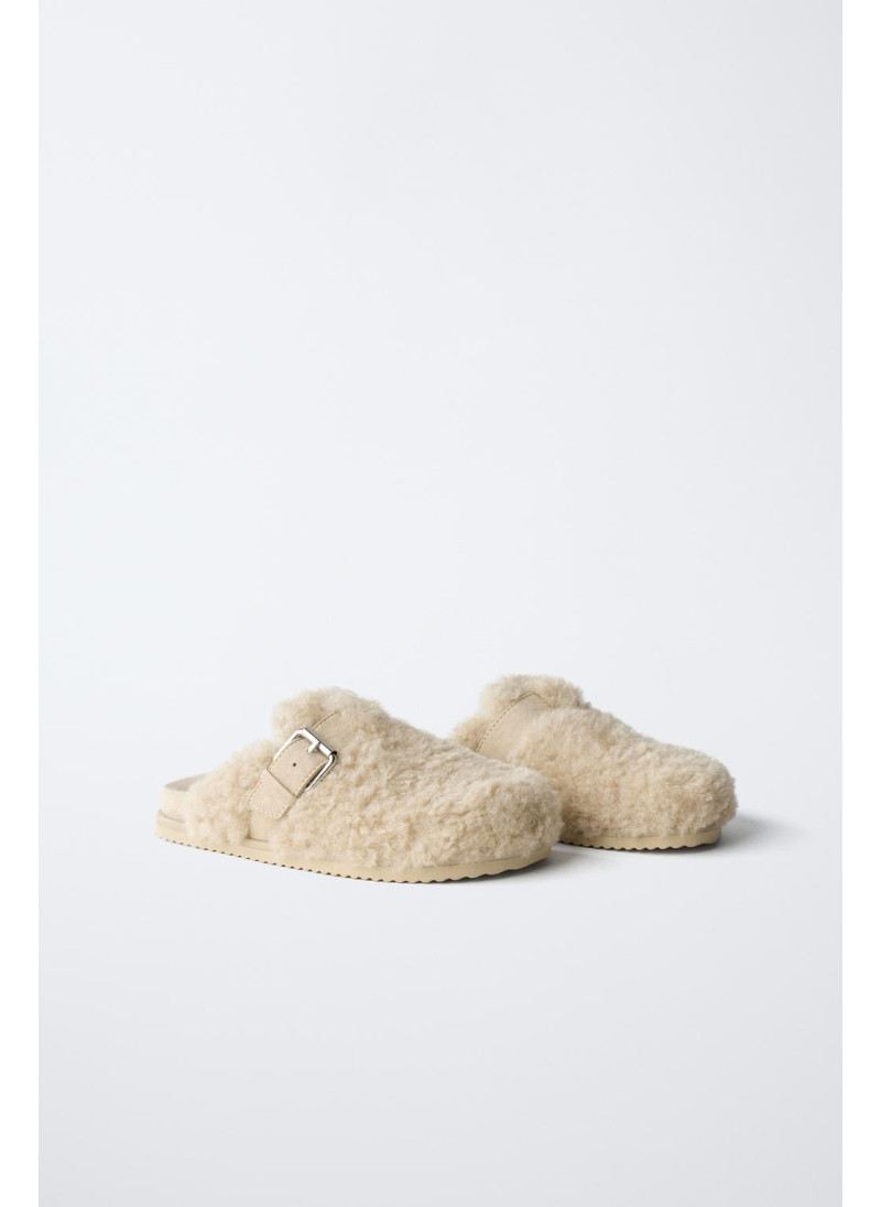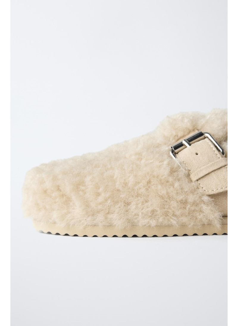 Обувь в стиле сабо с отделкой из эко-овчины и деталями в виде пряжки. Резиновая подошва.