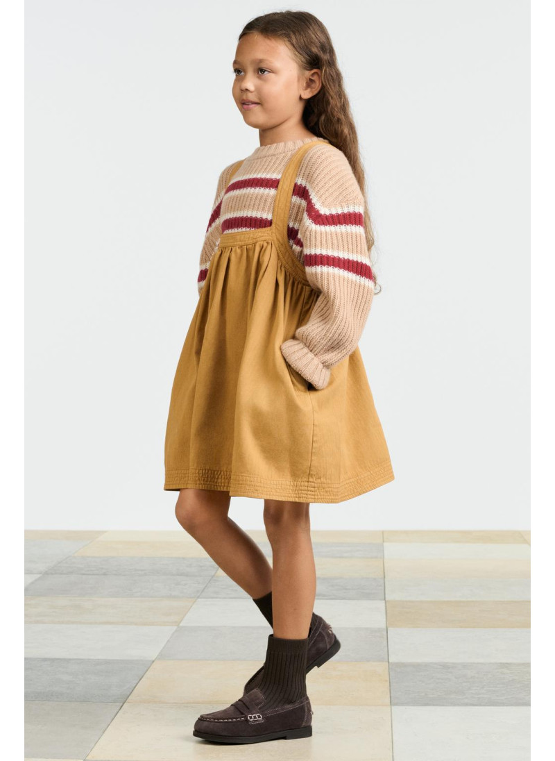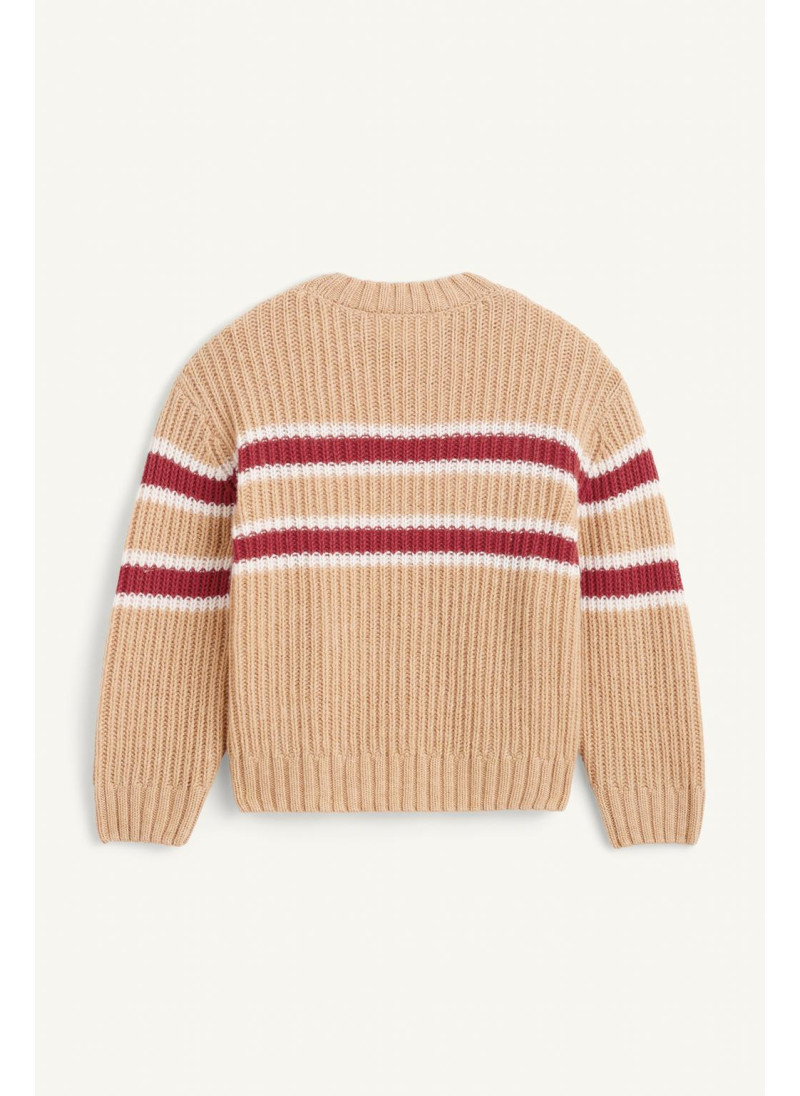 Вязанный джемпер с круглым вырезом и длинными рукавами. Украшен полосатым принтом на груди и рукавах. Изготовлен из 100% шерсти...