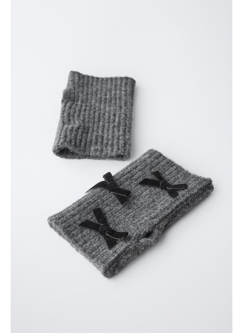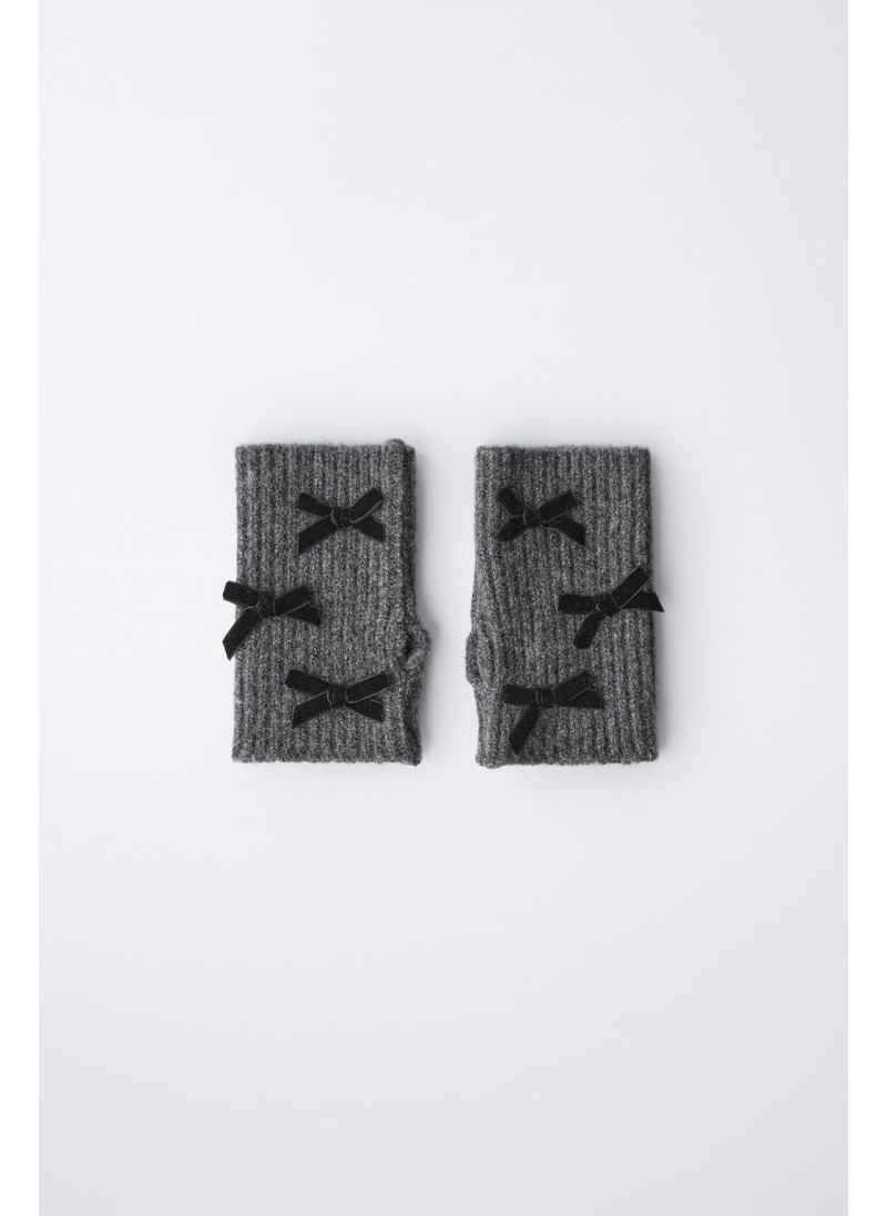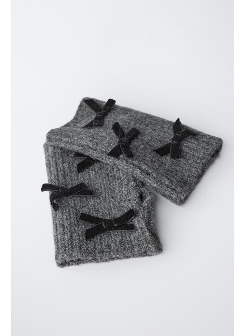 ВЯЗАНЫЕ МИТЕНКИ С БАРХАТНЫМИ БАНТАМИ