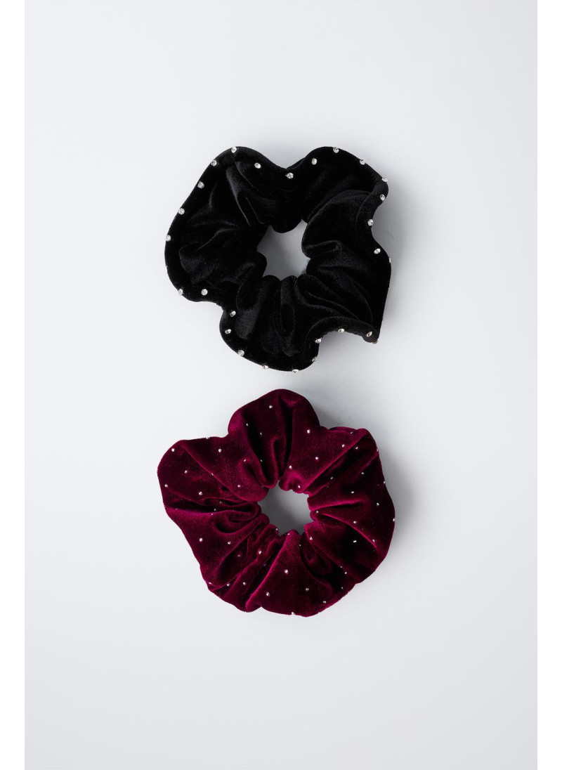 Набор из двух эластичных резинок для волос из бархата с аппликацией из страз. Содержит мелкие детали, не подходит для детей до 3 лет.