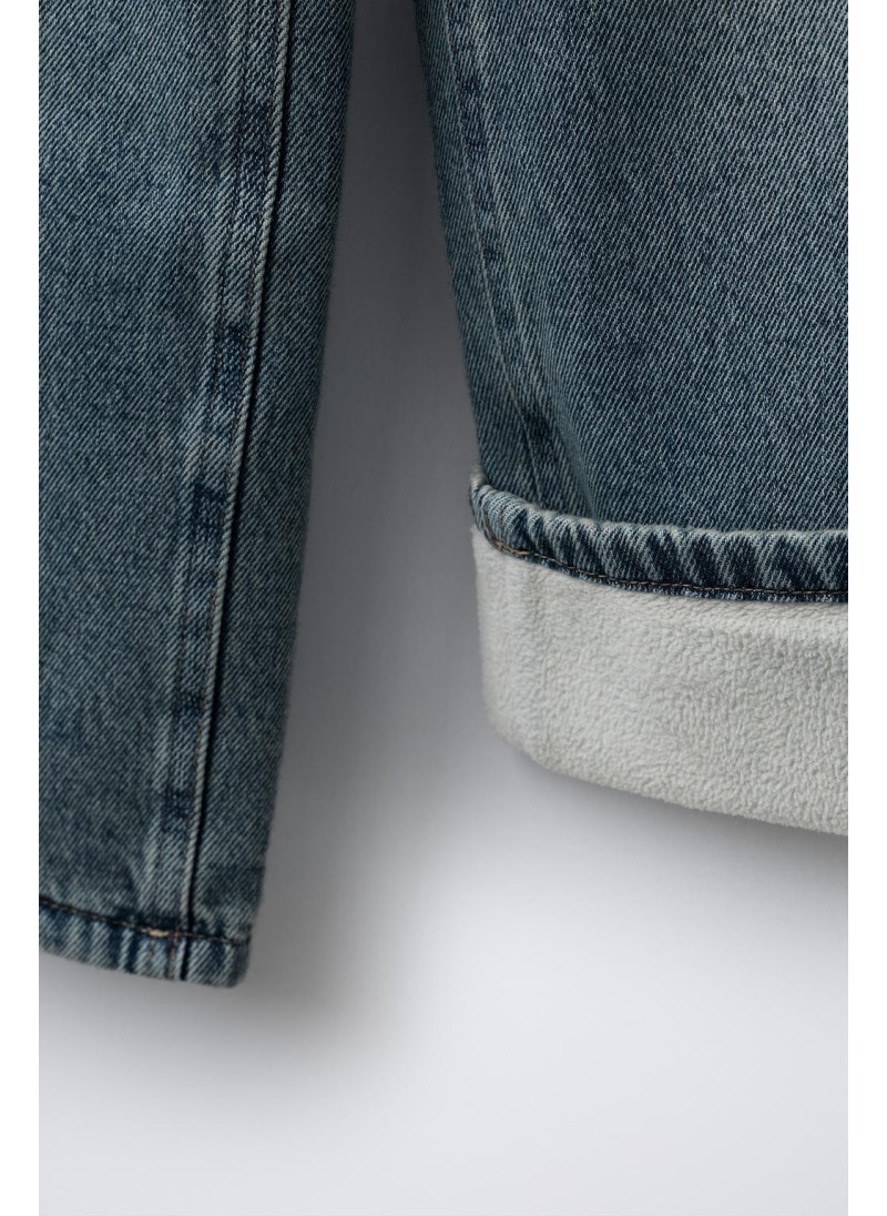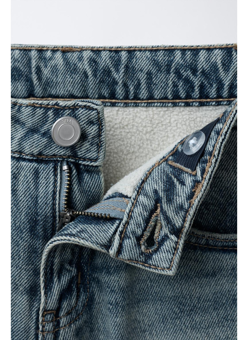 Джинсы свободного кроя с регулируемой внутренней резинкой на поясе и застежкой на пуговицу спереди. Передние и задние накладные карманы. Подкладка из флиса.