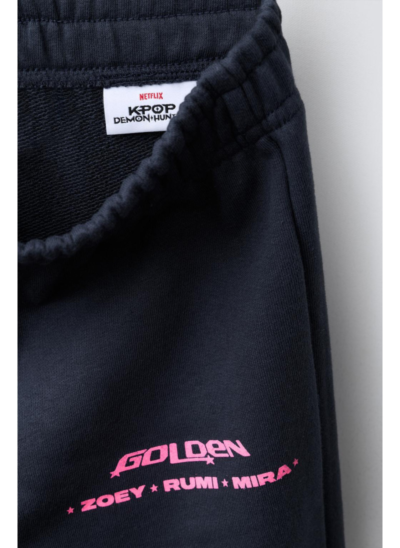 Брюки wide leg из мягкой ткани с эластичным поясом. Сзади накладной карман с нашивкой. Принт KPOP DEMON HUNTERS™ NETFLIX ©. Ткань содержит 63% хлопка.