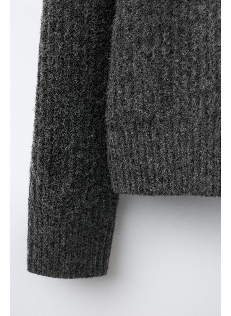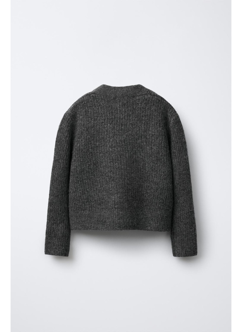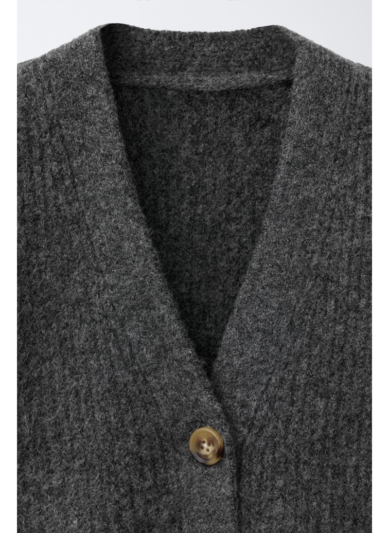Теплый плетеный кардиган цвета темно-серый. Идеальный выбор для создания стильного образа в прохладный день.