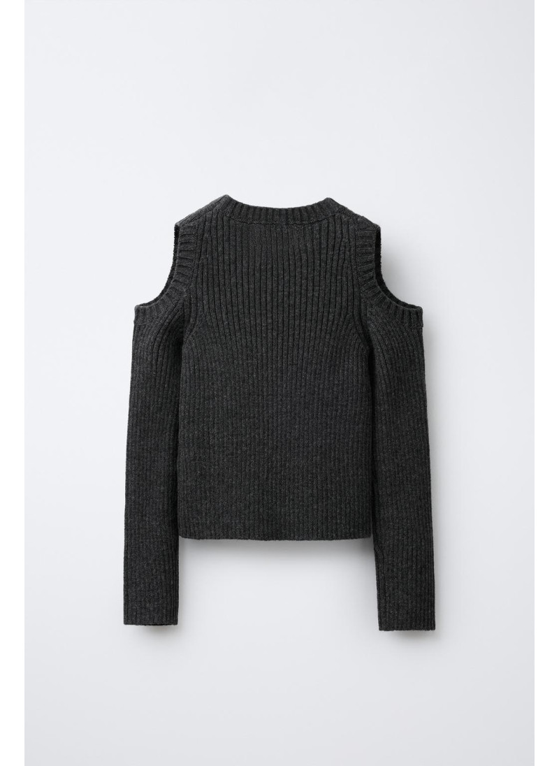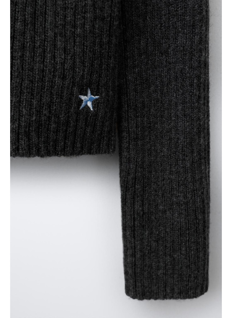 Оригинальный вязаный свитер серого цвета с вышитой звездой. Стильный и уютный вариант для повседневного образа.