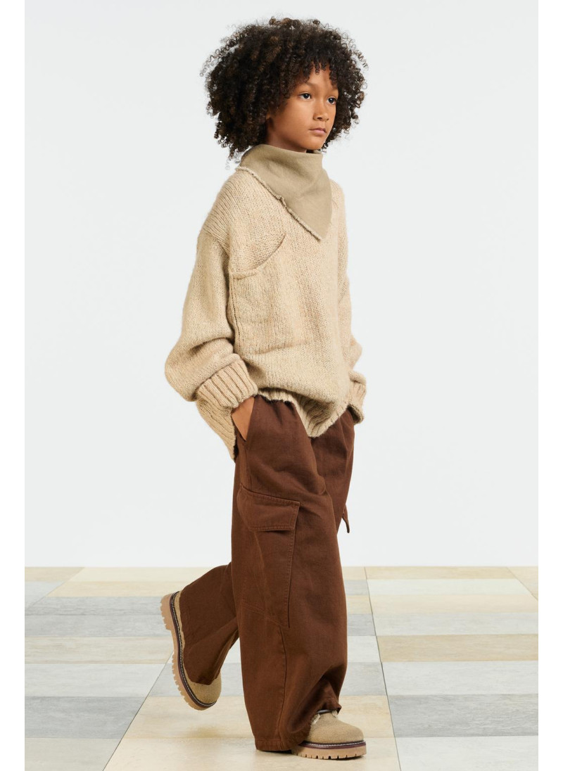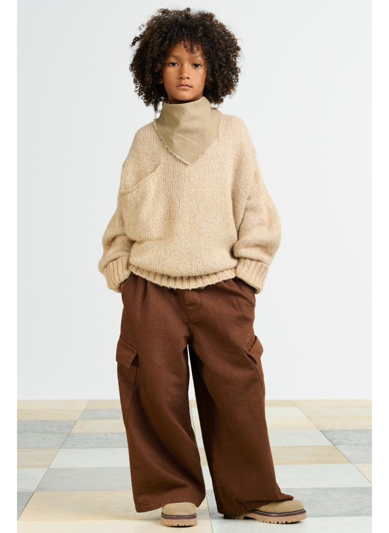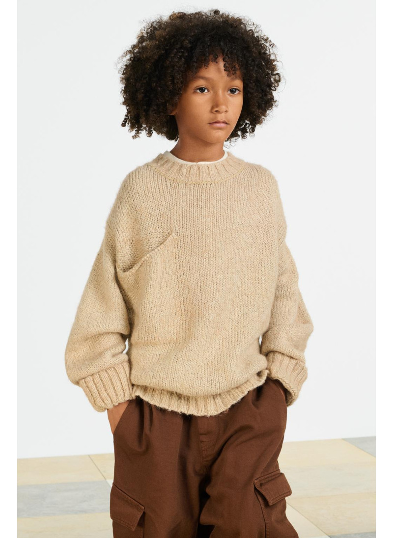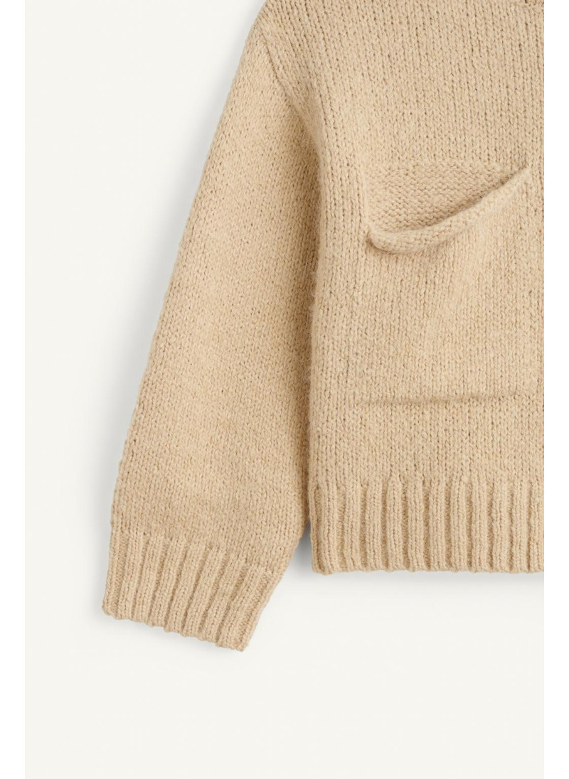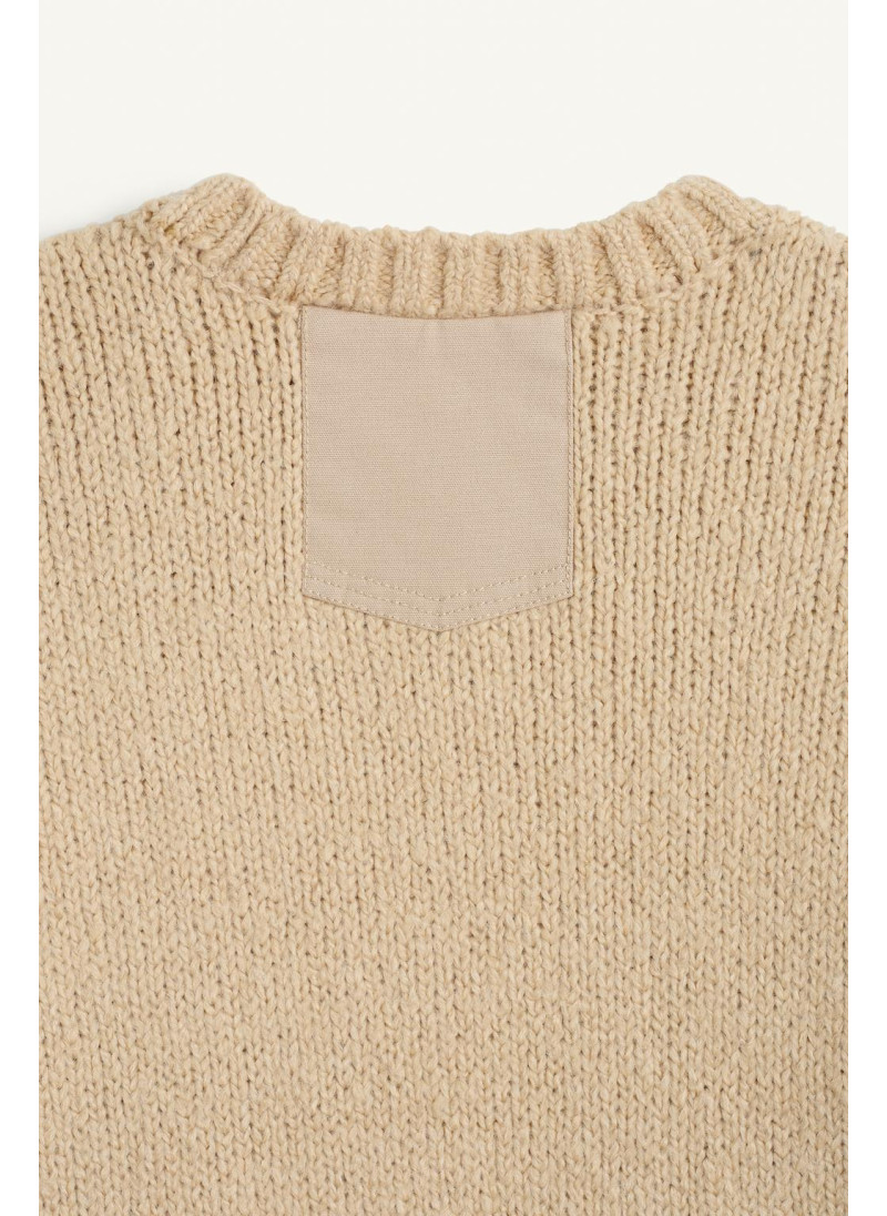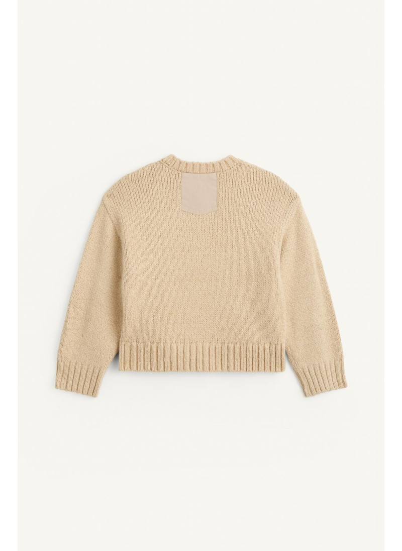 Длинный свитер с длинным рукавом и круглым вырезом горловины. Ребристые манжеты. Накладной карман на груди. Изготовлен из 18% альпаки.