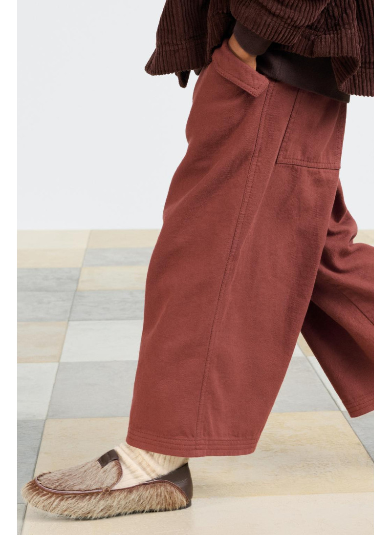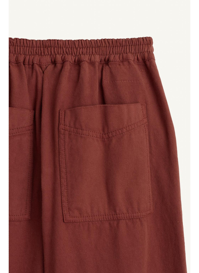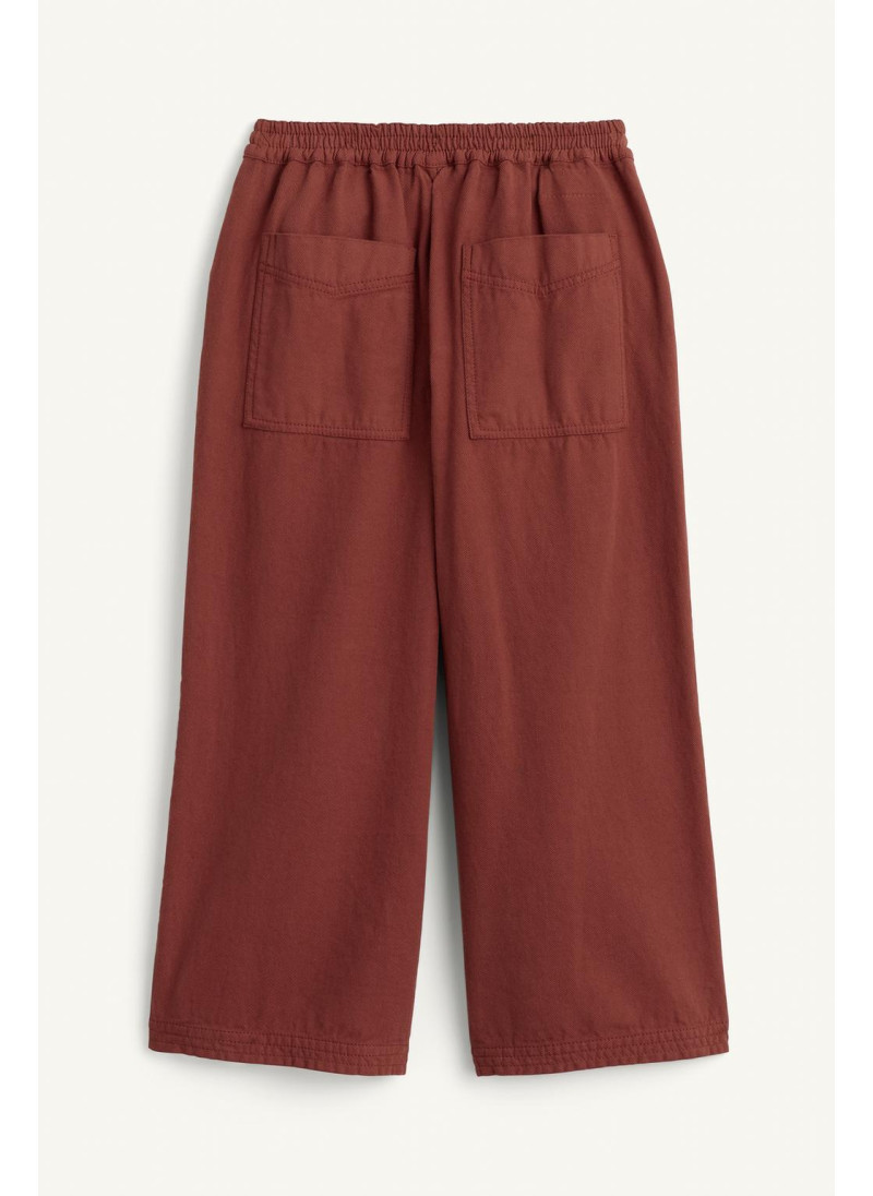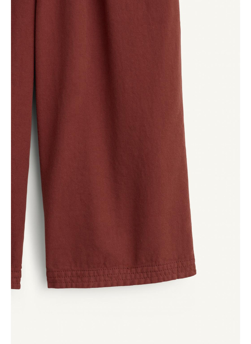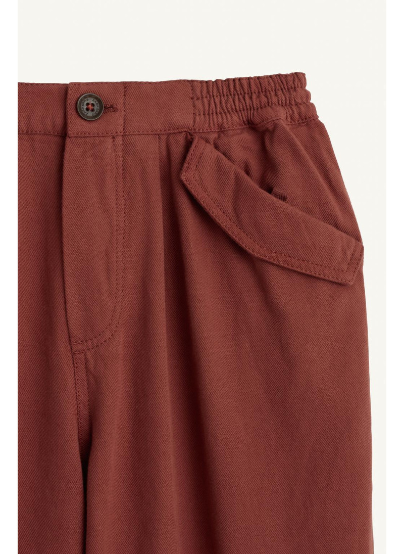 Брюки-капри с эластичным поясом и застежкой на пуговицу спереди. Имеют передние карманы с клапаном и задние накладные карманы. Изготовлены из 100% хлопковой ткани.
