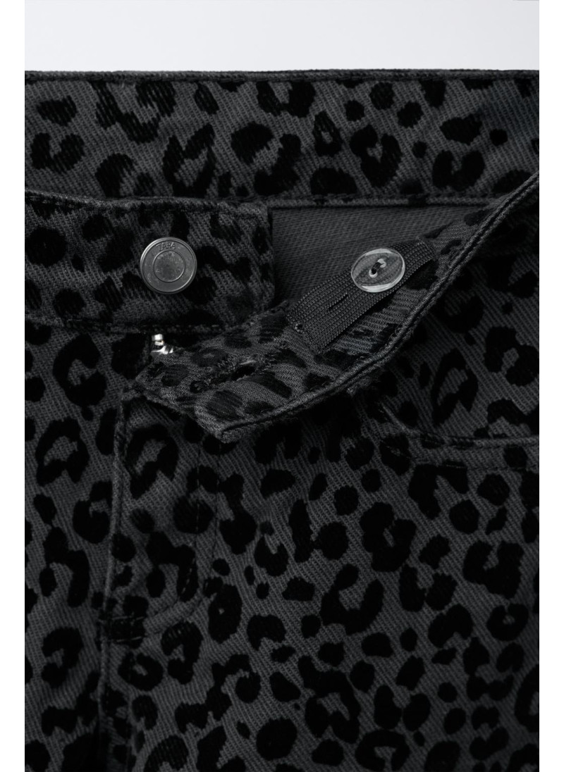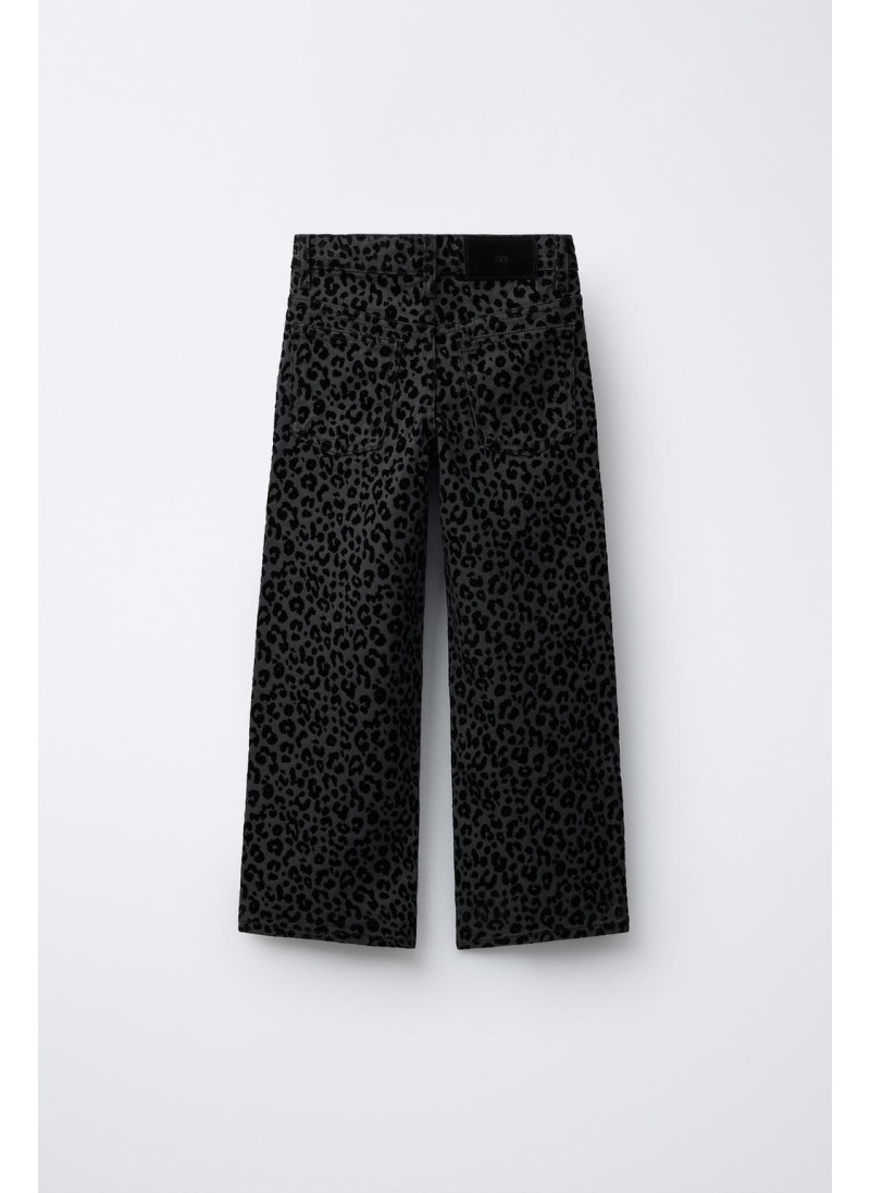 Джинсы в стиле широких брюк с регулируемой внутренней резинкой и застежкой на пуговицы. Передний карман и накладной карман на задней части. Украшены дизайном с животным принтом.